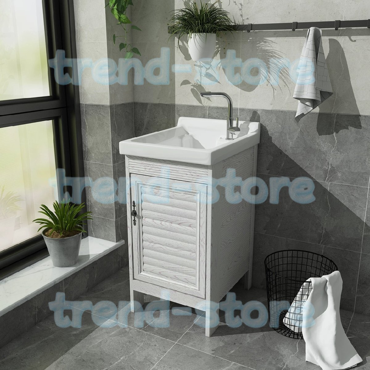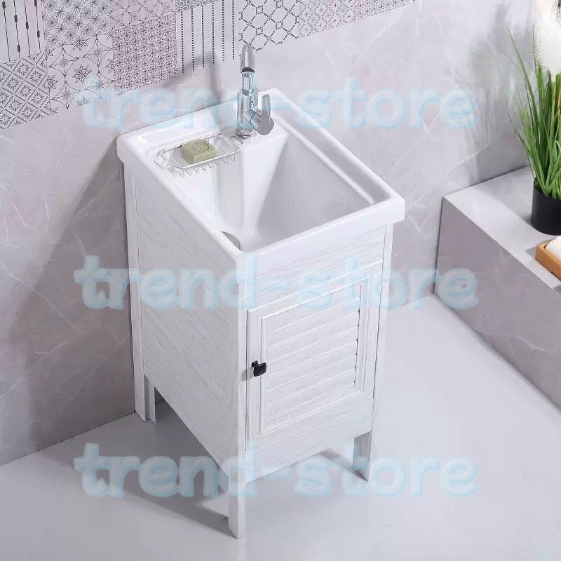 洗面台 洗面ボウル 手洗い器 陶器 ロッカー付 洗面所 収納 キャビネット、水はね防止、温水・冷水栓付、排水金具 42*50*83cm