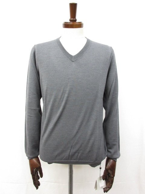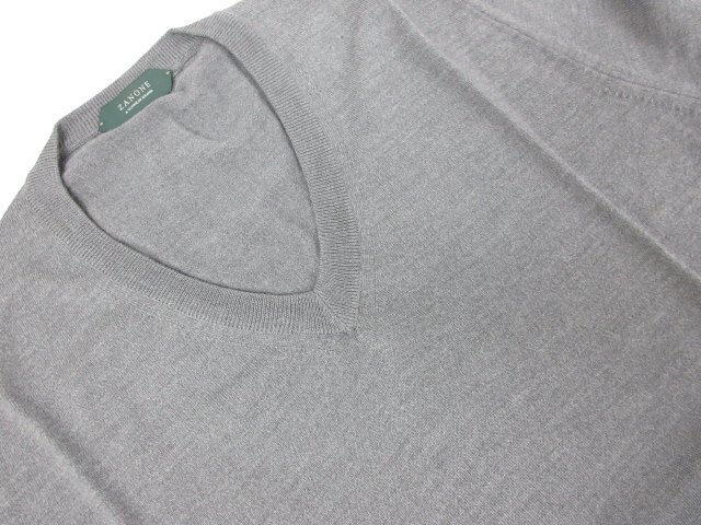 未使用【ザノーネ ZANONE】 810159 Z0290 Z7284 定価44000円 flexwool Vネック ハイゲージ 長袖ニット (メンズ) size52 グレー◯10ZZN0519