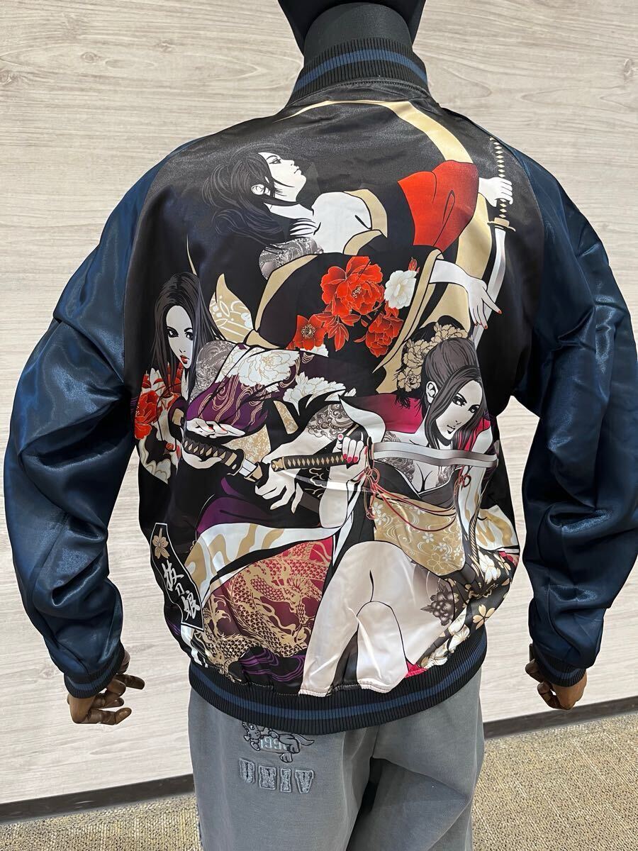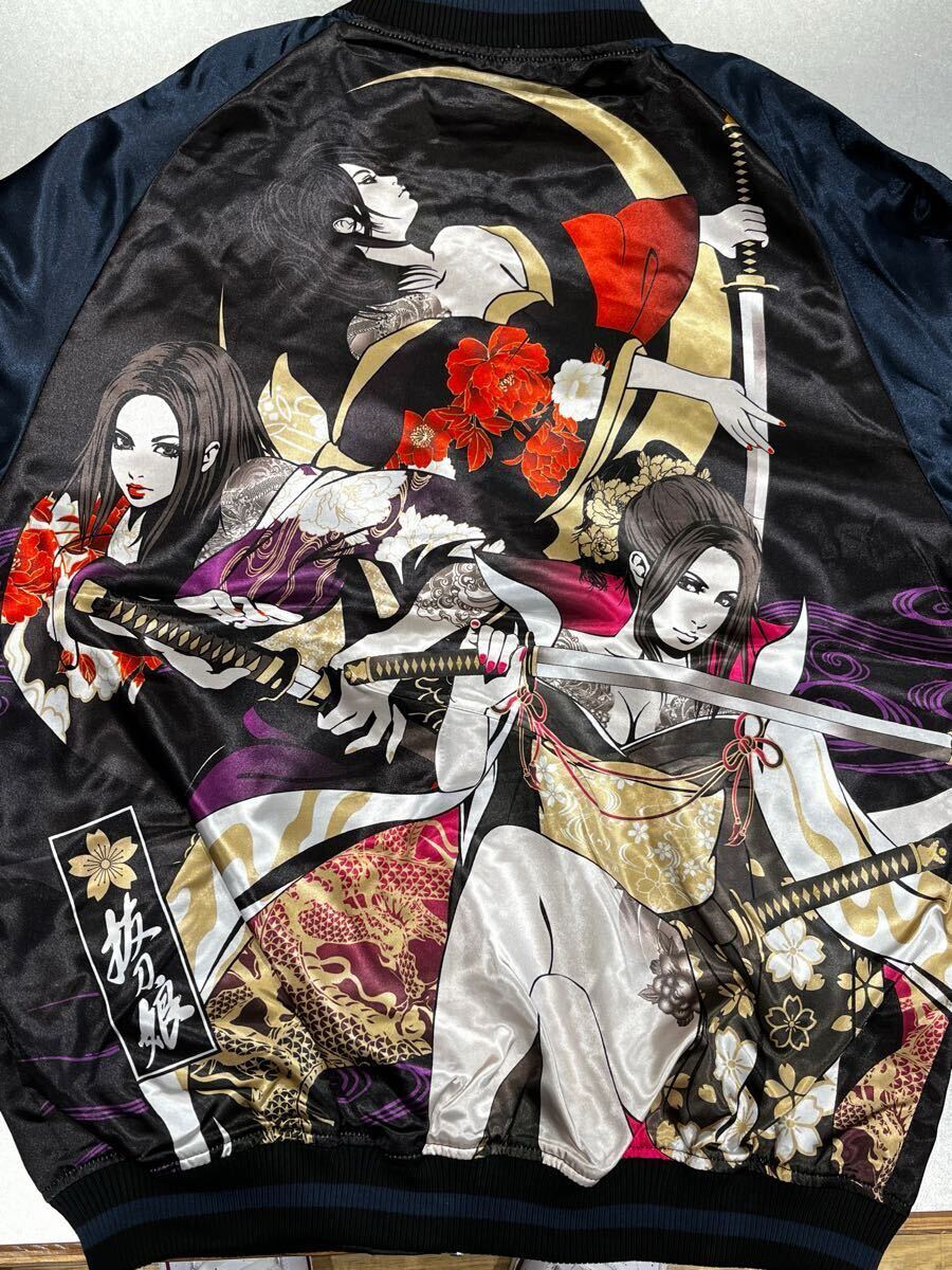 抜刀娘 穂乃花 凛 葵 3人娘 Lサイズ スカジャン 昇華転写サテンジャンバー 和柄 着物娘 男女兼用 ユニセックス