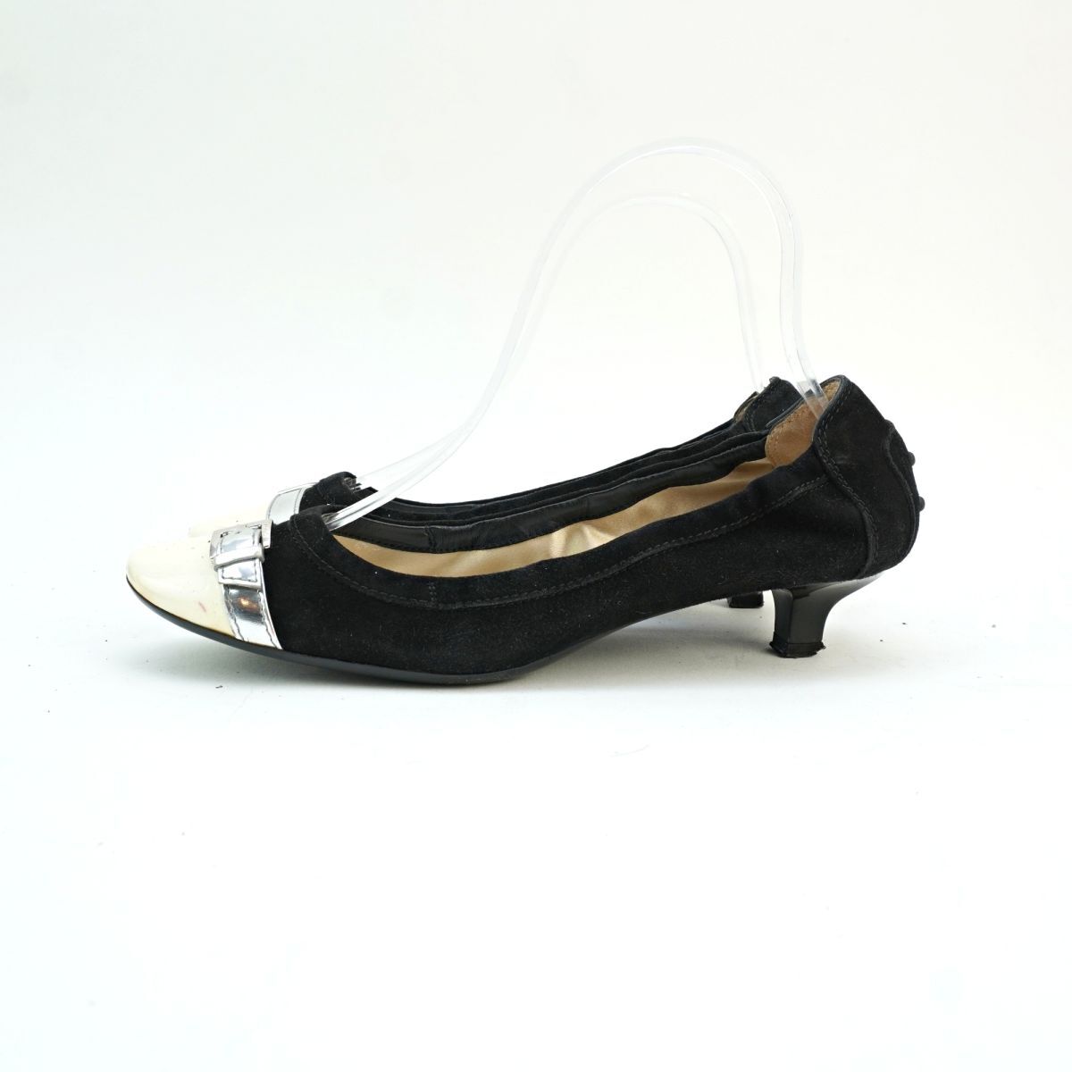 □サイズ:37 24.0 ※海外表記の場合 上記に掲載している靴のサイズはあくまで目安です。 靴メーカーによって、また同じメーカーの靴であってもデザインやシリーズなどによりサイズは微妙に違ってきます。あくまで参考程度の目安としてご利用下さい。 ヒールの高さ:3cm □素材:スエード エナメル □カラー:黒 ブラック アイボリー □状態 比較的使用感は感じられず、特別目立つような汚れ等は見受けられません。 まだまだ使用していただけるお品物です。 ■お取り置きについて お取り置きの対応は行なっておりません。 ご了承くださいませ。 ■落札後のご連絡について ご落札後のご質問・値下げ交渉にはお答えできかねます。 ご質問がありましたら入札前にお願いいたします。 商品落札後は期限内にご入金をお願い致します。 ご入金頂けない場合、 通達連絡をさせて頂きます。それでもご連絡が無い場合は「落札者の都合によるキャンセル」にてお取引を中止とさせて頂きますのでご注意下さい。 ※自動的に「非常に悪い」の評価が付きます。 ■発送について 追跡番号が必要な場合は発送前にご連絡ください。 商品発送後に追跡番号を要求された場合、対応出来かねますのでご了承ください。 また、日時指定の対応は出来かねます。その場合も追跡番号の有無をご連絡くださいますようお願いいたします。 ■商品到着後のお問い合わせについて 記載ミス・抜けがあった場合のみ返金を考慮いたします。必ず 評価前に取引ナビよりご連絡ください。 ※お電話での問い合わせ対応はしておりませんのでご了承ください。 ■評価について 評価が不要の場合はこちらへの評価も入れないようお願い致します。 尚、お問い合わせ前や対応前でのいきなりの悪評価はご遠慮下さい。 不備がありましたら必ず事前にお問い合わせをお願い致します。 いきなりの悪評価の場合、同等評価とさせて頂く場合がございます。 ■商品について 新品商品以外はあくまでUSED品となっております。 着用に問題が無いと判断した商品を出品しておりますが、細かな見落としもございますので、神経質な方、商品のクオリティーをお求めの方は入札をお控え下さい。 検品の際にできる限りの商品ケアをさせて頂いておりますが、素材や繊維のニオイが残る場合がございます。 天気の良い日に風通しの良い場所で2日程度天日干しをお試し下さい。 商品到着後のサイズ変更やカラー変更・他商品への変更等、落札者様の都合での商品交換、返品は一切お受けしておりません。 画像参照を確認をしていただき十分ご検討の上にてご入札下さい。(ただし初期不良は除く) ■画像と実物品のイメージ・色について 掲載している画像は撮影用の商品となりますので お届けする商品によっては柄の配置等が微妙に違う場合がございます。 1枚布・生地を裁断して大量生産する場合、生地をカットした部分が 1着・1着それぞれ異なる為、柄の位置ズレが発生致しますので 掲載画像と実物品のイメージが違う場合がございます。 あらかじめご理解とご了承下さいます様、お願い致します。 当店では室内で撮影をしていますが、夜間や室内の暗い場所・蛍光灯の光で商品を見ると 色やイメージが違って見える場合がございます。 また、スマホやPCモニターの解像度・照度設定等の違いや、ブルーライト軽減の効果により出品画像の色と実物品の色合いが違って見える場合がございます。 実物品を撮影した画像を掲載しておりますので「画像と実物品のイメージが違う」「●●色に見える」等のお問い合わせはお受けしておりませんのでご了承下さい。 ■入札について 新規入札の方や評価の悪い方はトラブル防止の為、 入札をお断りする場合がございます。あらかじめご了承下さい。 ※新規の方・評価の悪い方からの不正な迷惑行為が多いため。