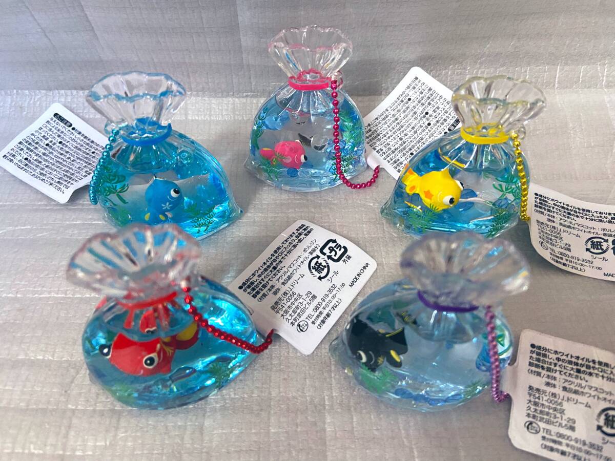 非売品◆チャーミーでめきん袋入りぷかぷかBC2【全5種セット】オイルチャーム◆出目金 キーホルダー 金魚鉢