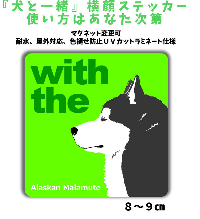 アラスカンマラミュート『犬と一緒』 横顔【玄関 車 ポスト】ステッカー 名入れマグネット変更可 屋外 防水 カスタマイズ可