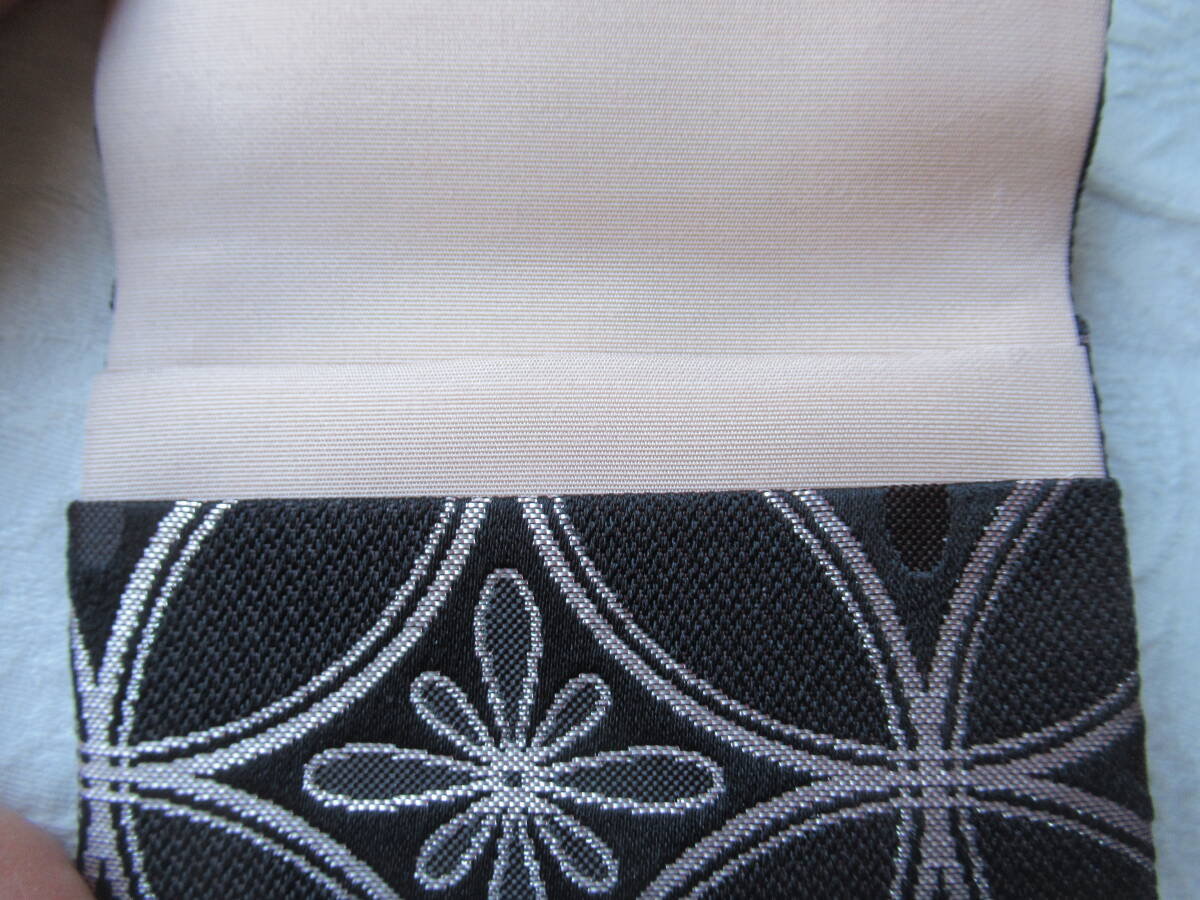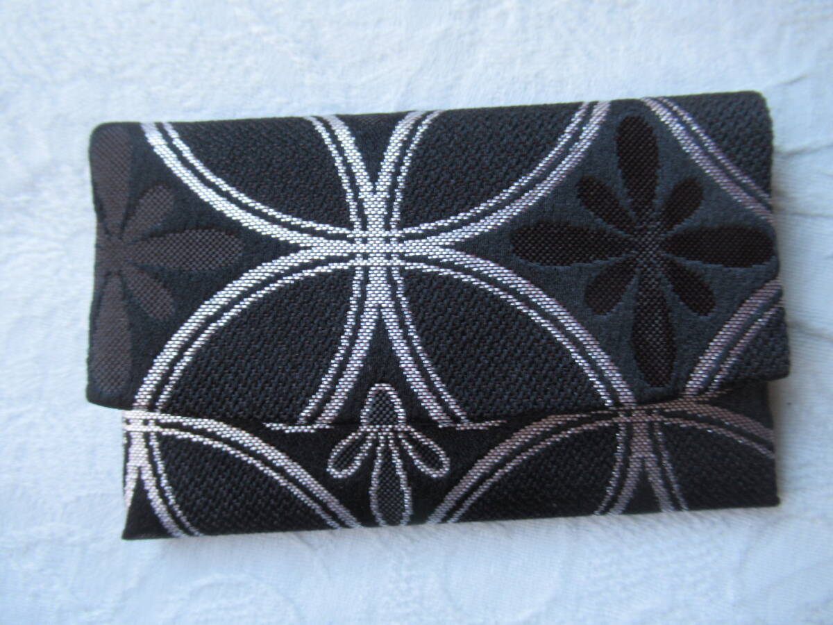 手作り 金襴カードケース名刺入れ保険証入れ (黒地に銀の柄)