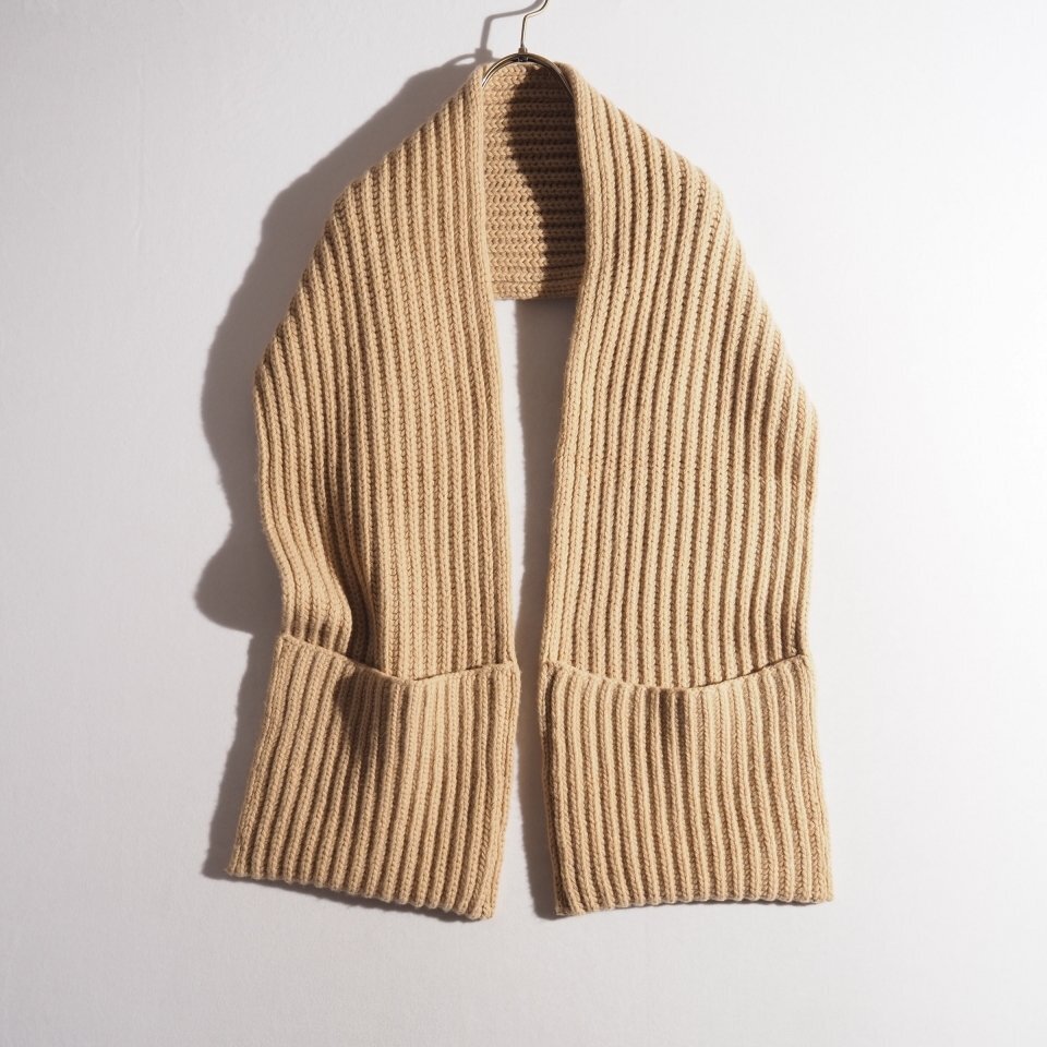 ポケット付き ローゲージ ウールリブニットマフラー ベージュ