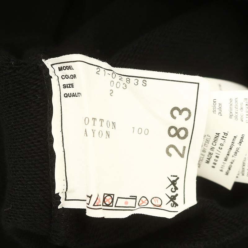 サカイ sacai × カウズ KAWZ 21SS Embroidery Hoodie プルオーバーパーカー スウェット 長袖 ロゴ刺繍 2 黒 ブラック 白 ホワイト /DO ■OS ■SH メンズ