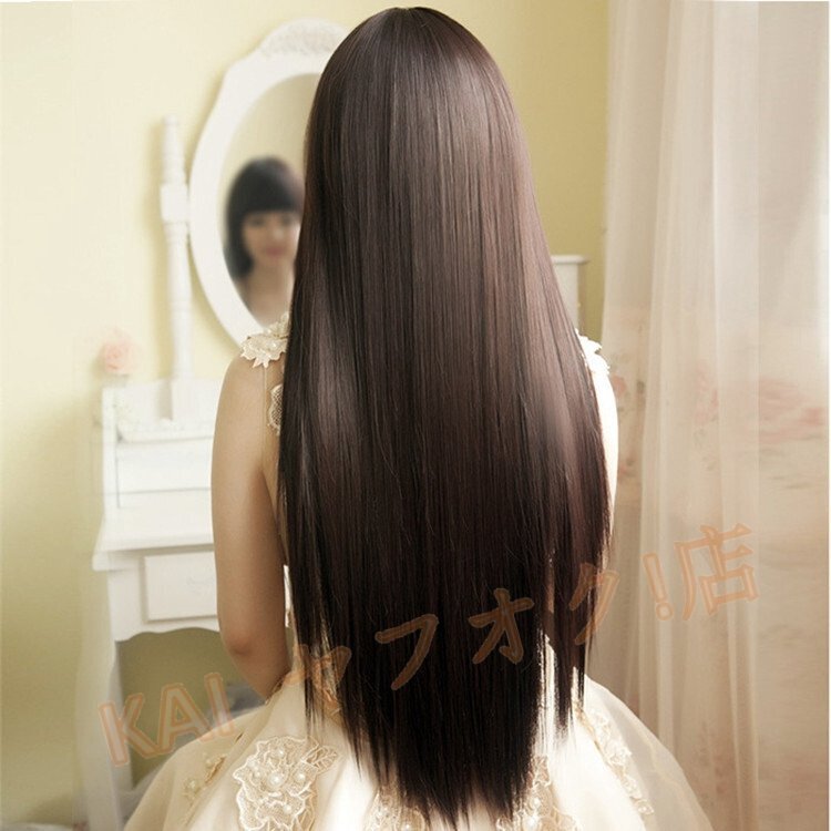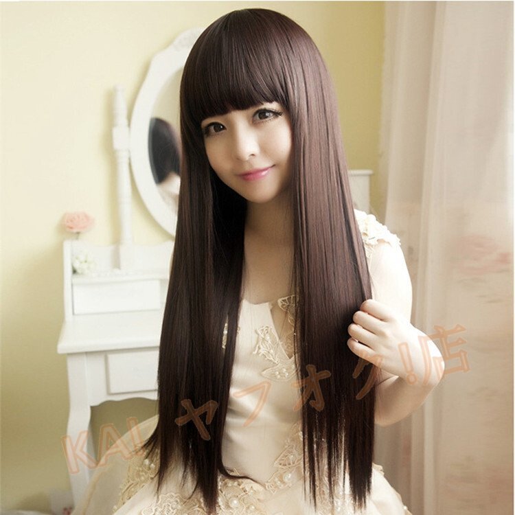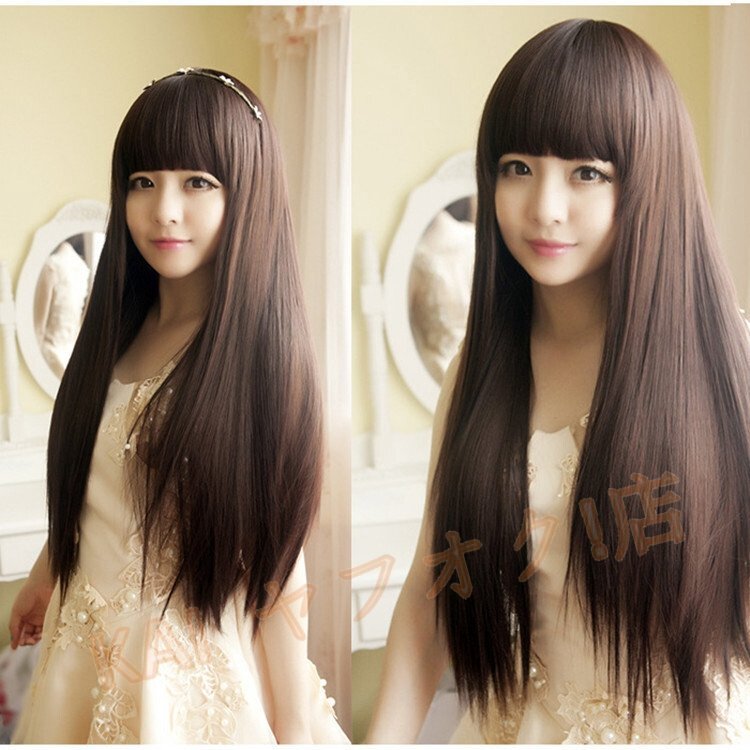 ぱっつん前髪の茶髪ロングストレートウィッグです。