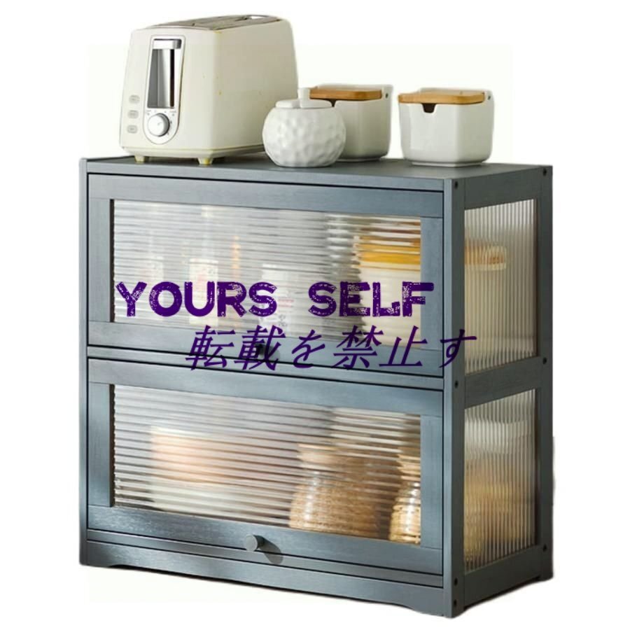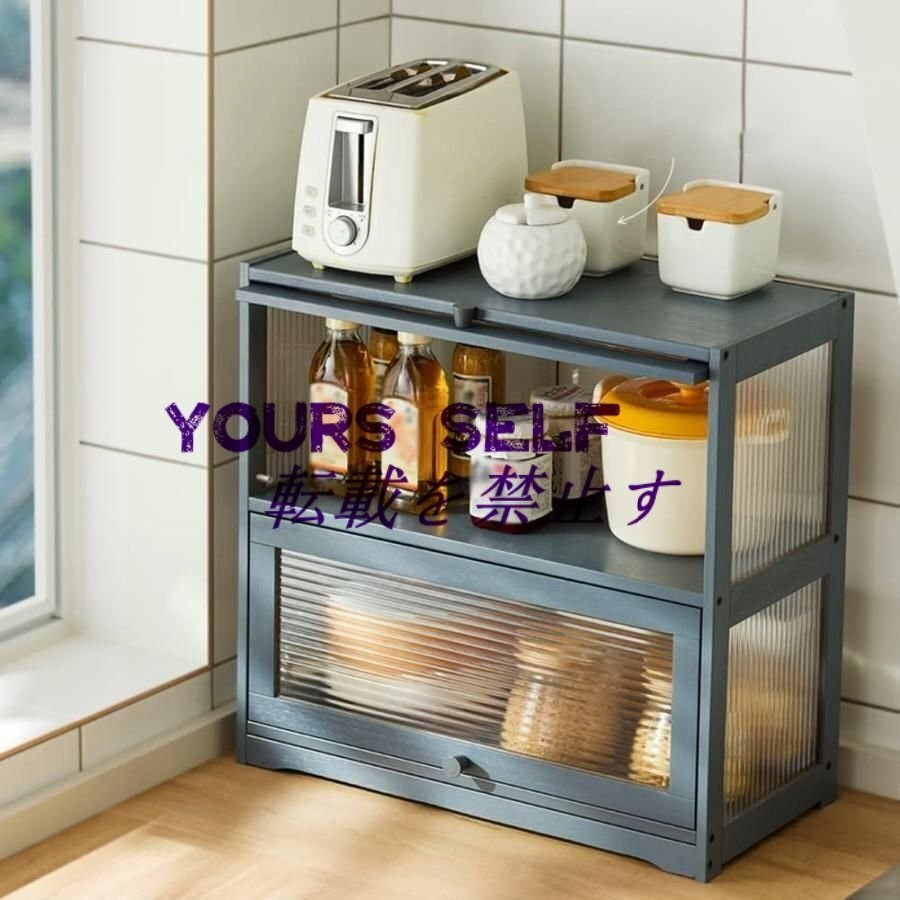 食器棚 卓上食器棚 キッチン収納棚 ミニ食器棚 キッチンキャビネット アクリル扉 レンジボード 調味料入れ 防塵 クラムシェルドア 簡単