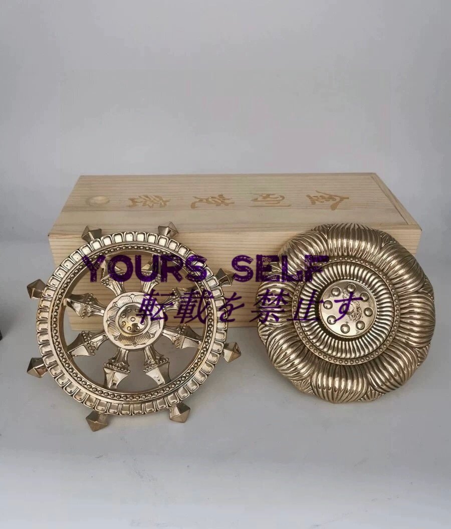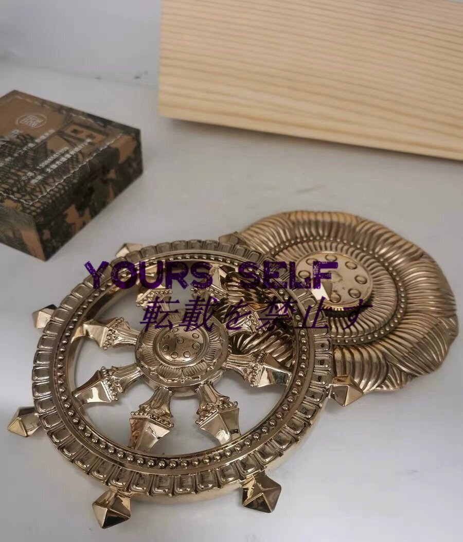 輪宝&輪羯台★仏教美術 大型 金剛輪 密教法具 寺院仏具 銅製 磨き仕上げ 直径13.5cm