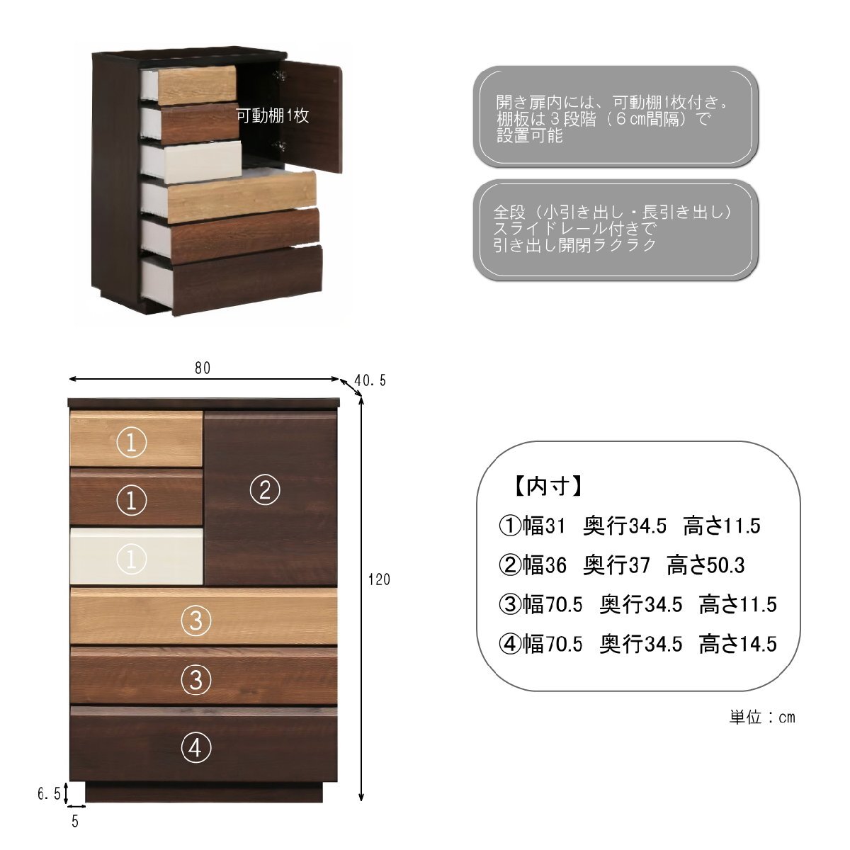 幅80cmチェスト 高さ120cm スライドレール付き 箱組 多用途デザイン色々 マルチカラー グラデーションカラー