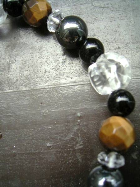 スカル水晶xタイガーアイxへマタイトブレスレット 天然石 パワーストーン