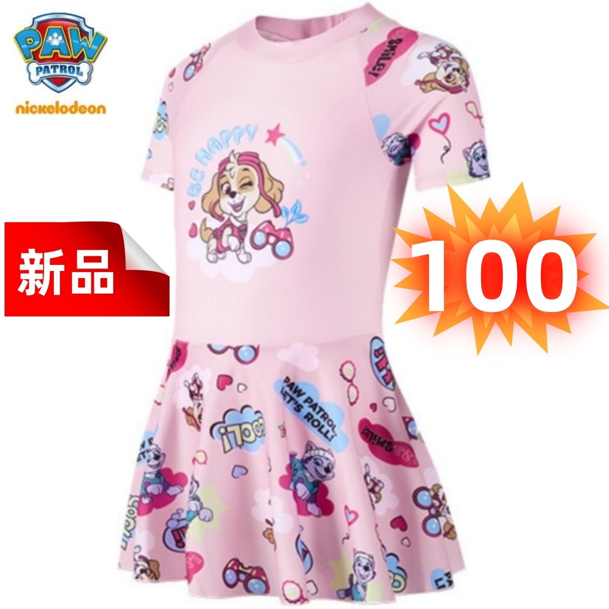 【新品】パウパトロール 女の子 ワンピース水着 スカイ キッズ スイムウェア 子供用 フリル かわいい ピンク UVカット プール 海水浴 100cm