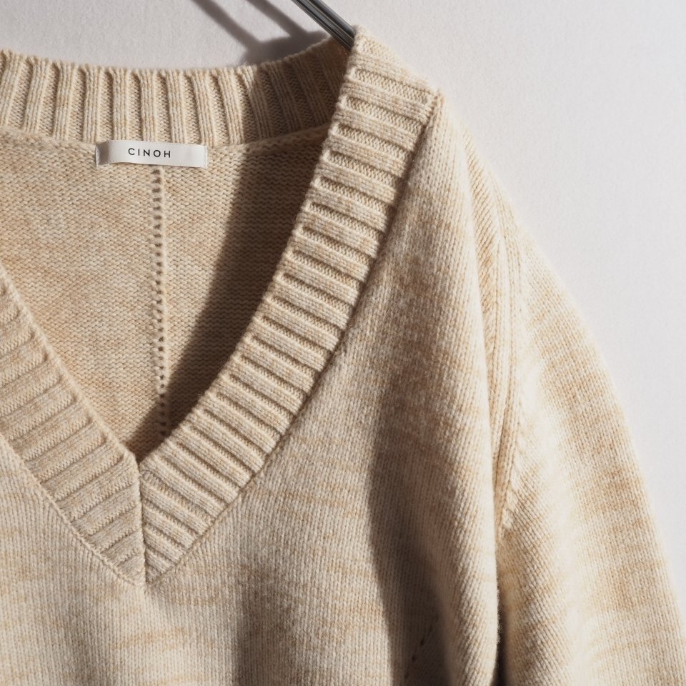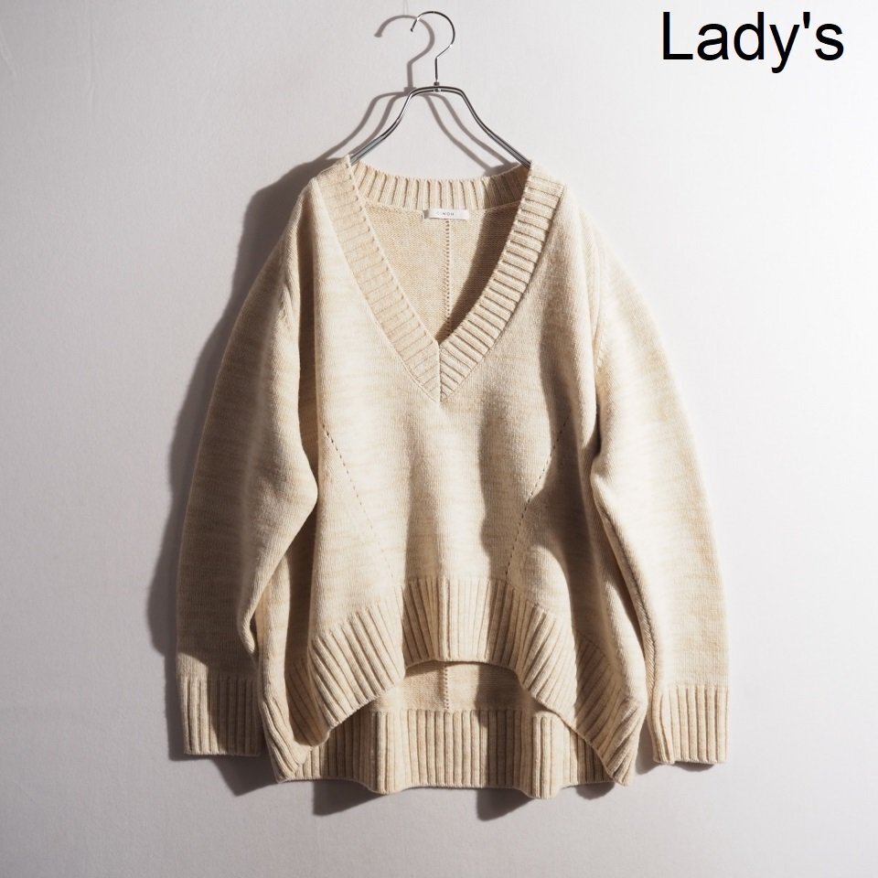 P6299P ▼CINOH チノ▼ 22AW Vネック オーバーサイズ ウールニット ベージュ 36 / オーバーサイズ 22WKN500 秋冬 rb mks