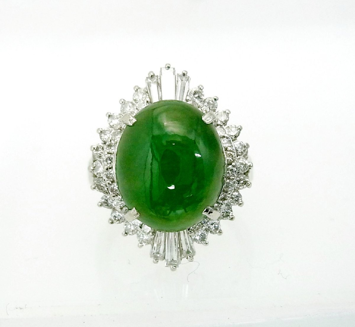 なんやかんや言っても翡翠は上品な宝石なのでトラディショナルなこの様なダイヤ取り巻きがよく似合いますよね。
