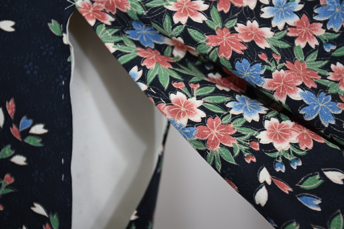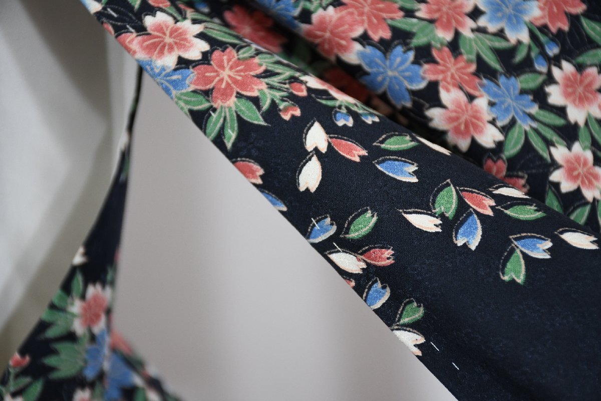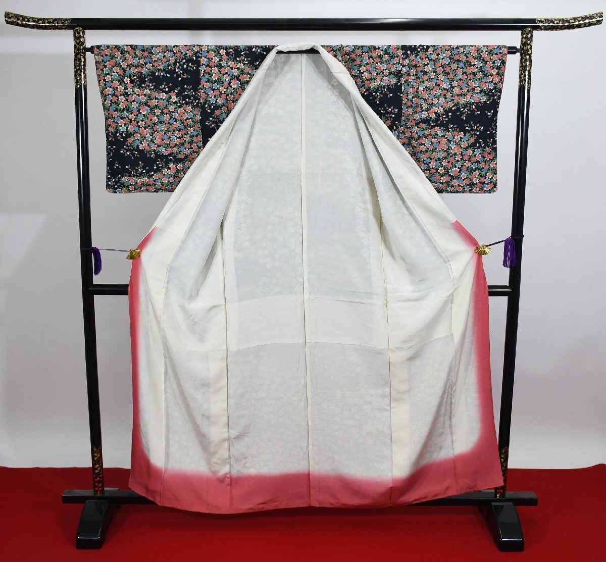 サイズ | ▼身丈 (背中から) 155cm ▼裄丈 66cm ▼袖丈 47.5cm ▼後巾 28cm ▼前巾 24.5cm |