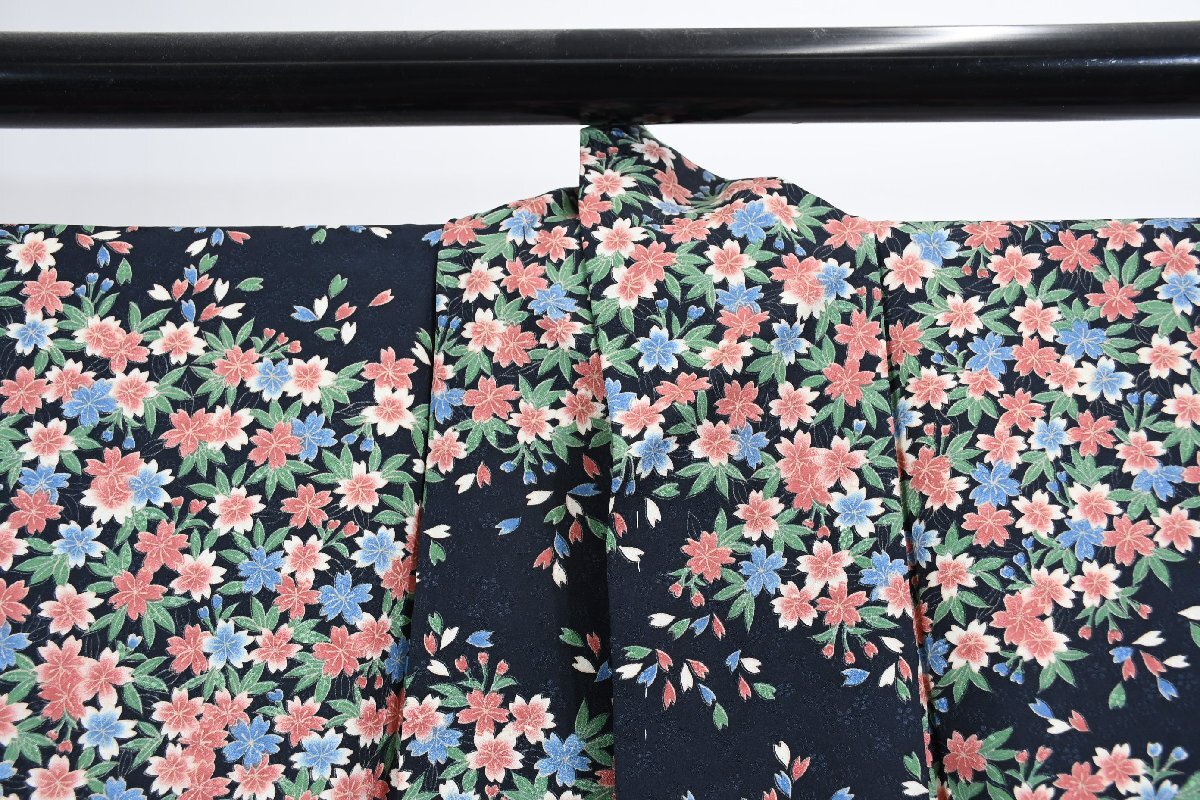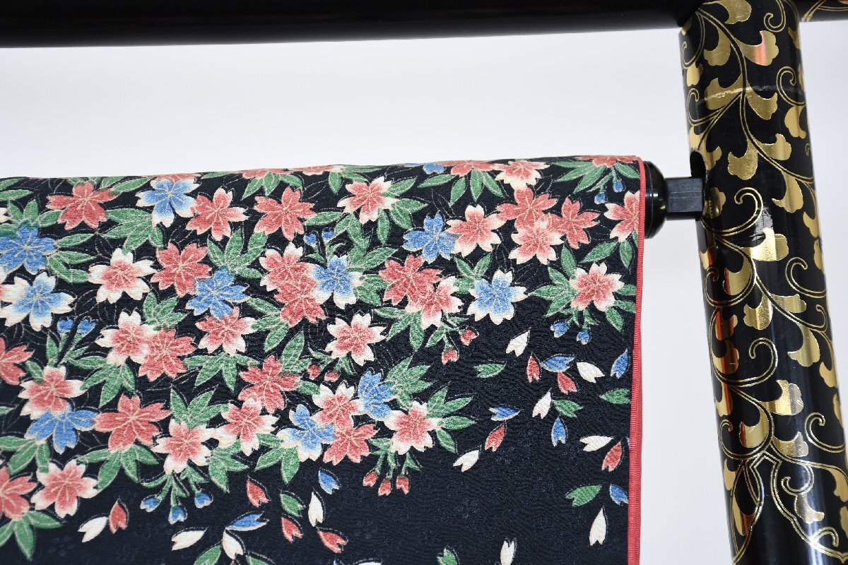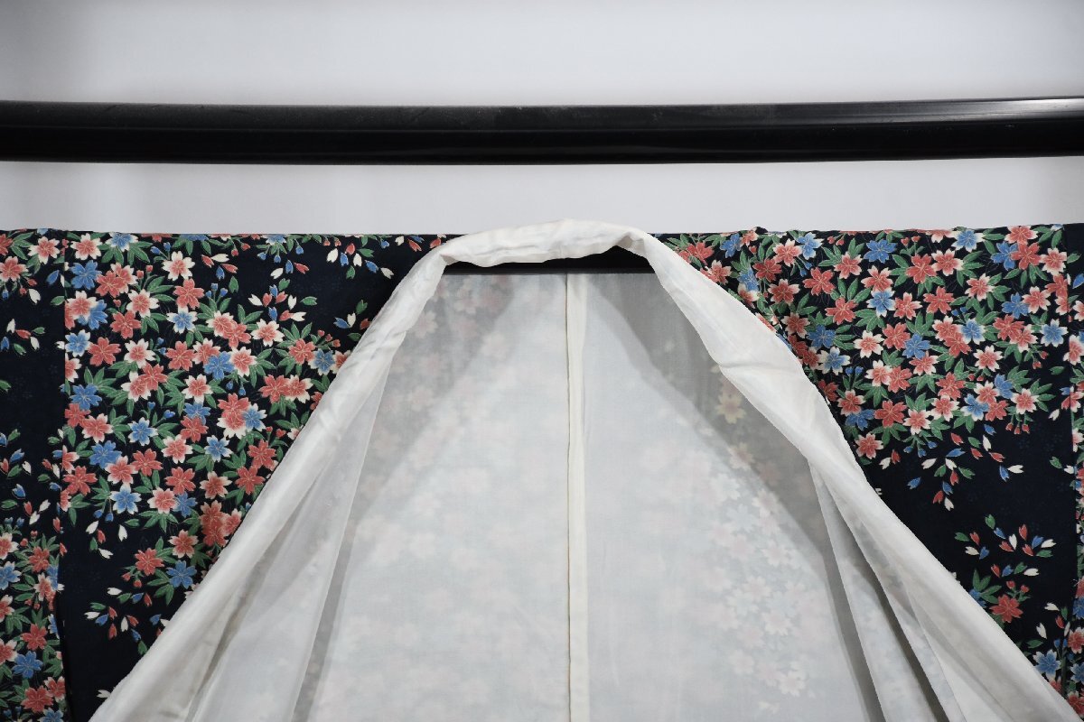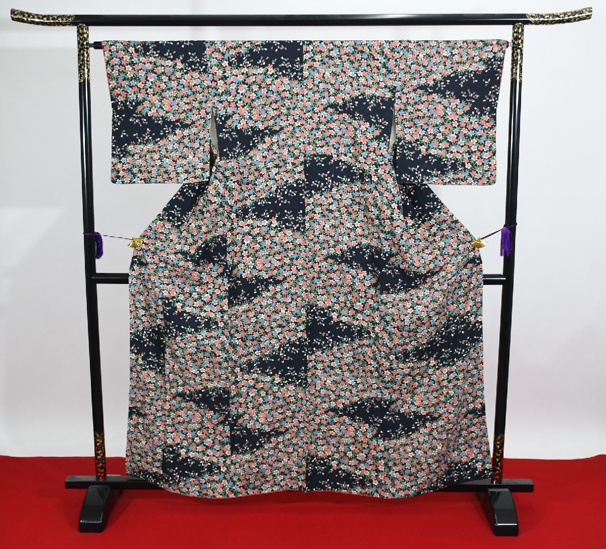 サイズ | ▼身丈 (背中から) 155cm ▼裄丈 66cm ▼袖丈 47.5cm ▼後巾 28cm ▼前巾 24.5cm |