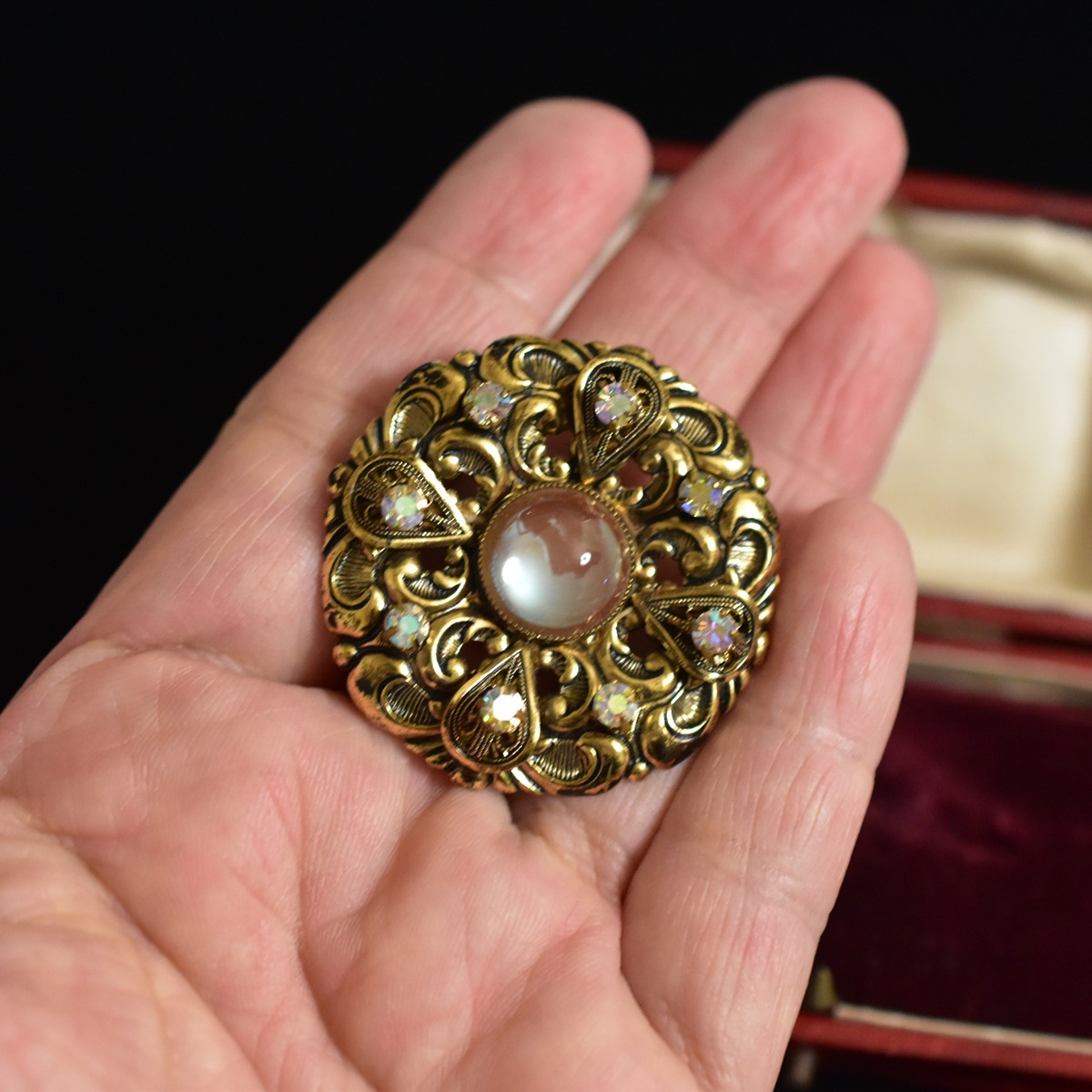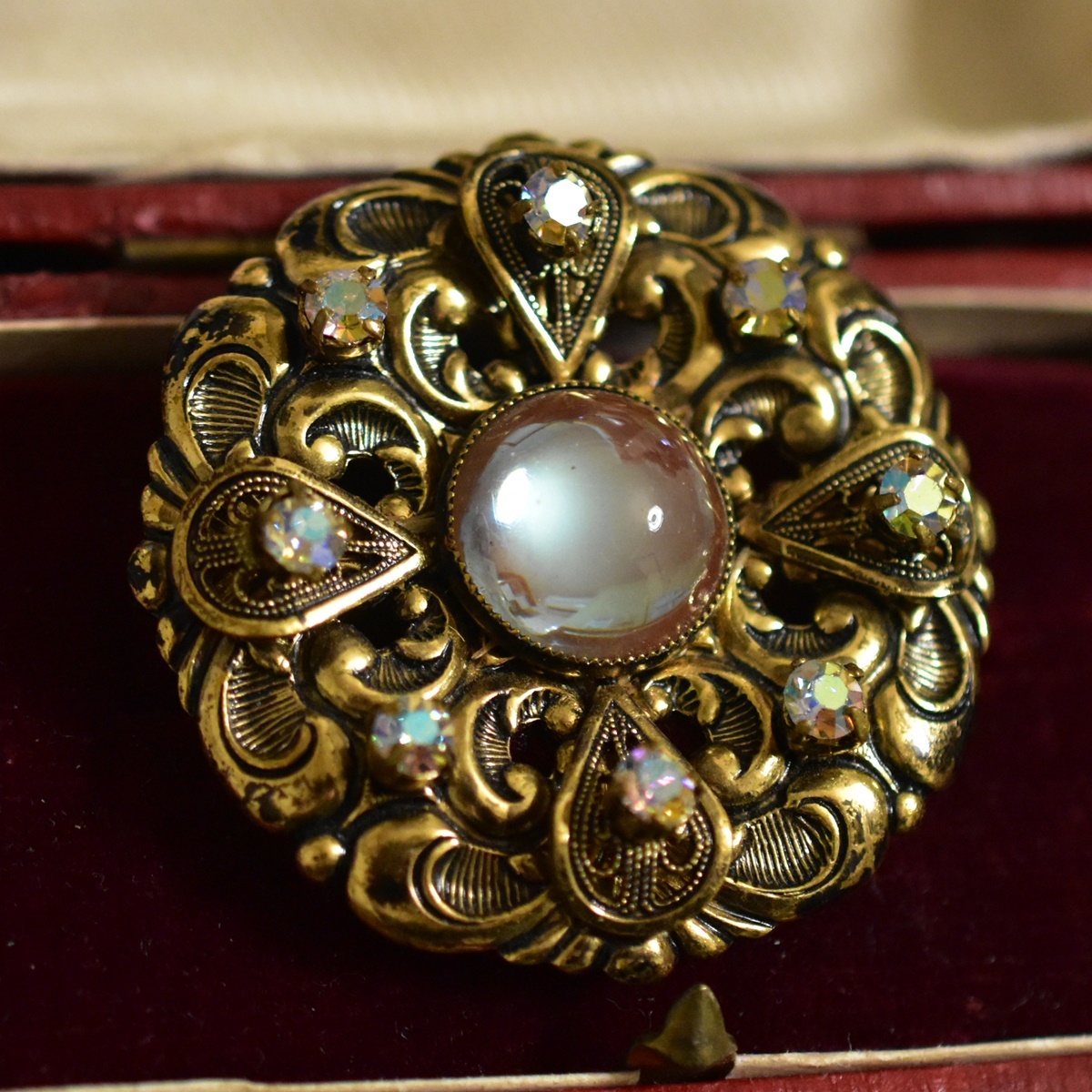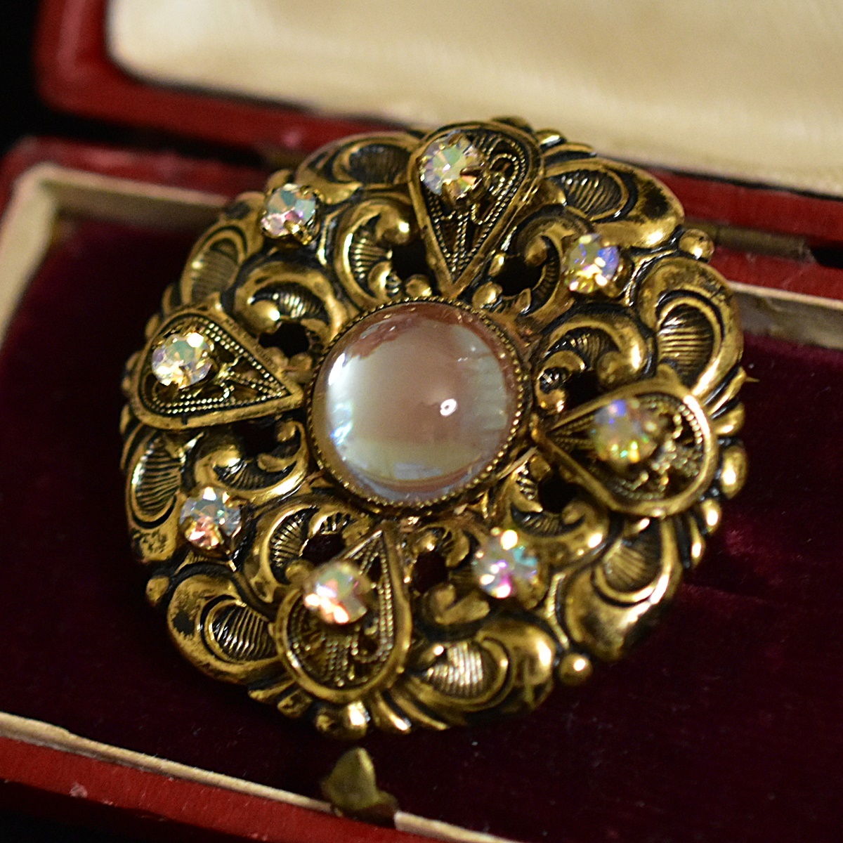 ヴィンテージ サファリーンとオーロララインストーンのブローチ 検索サフィレット 本物保証