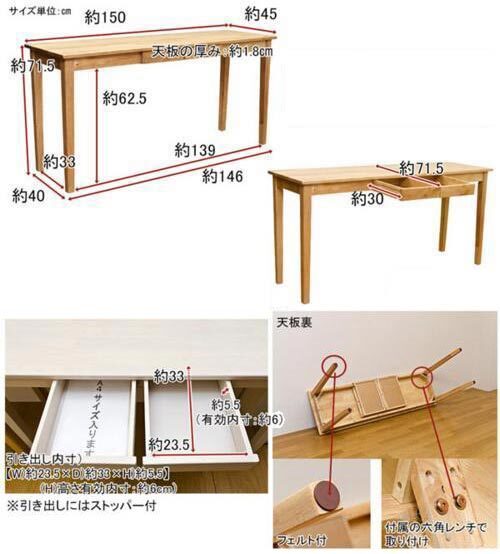 ■ サイズ:幅150.0×奥行き45.0×高さ71.5センチ 天板厚1.8センチ