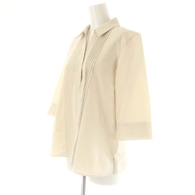 クードシャンス CdeC COUP DE CHANCE 洗える スキッパー衿ピンタックシャツ 七分袖 34 ライトベージュ /DO ■OS レディース