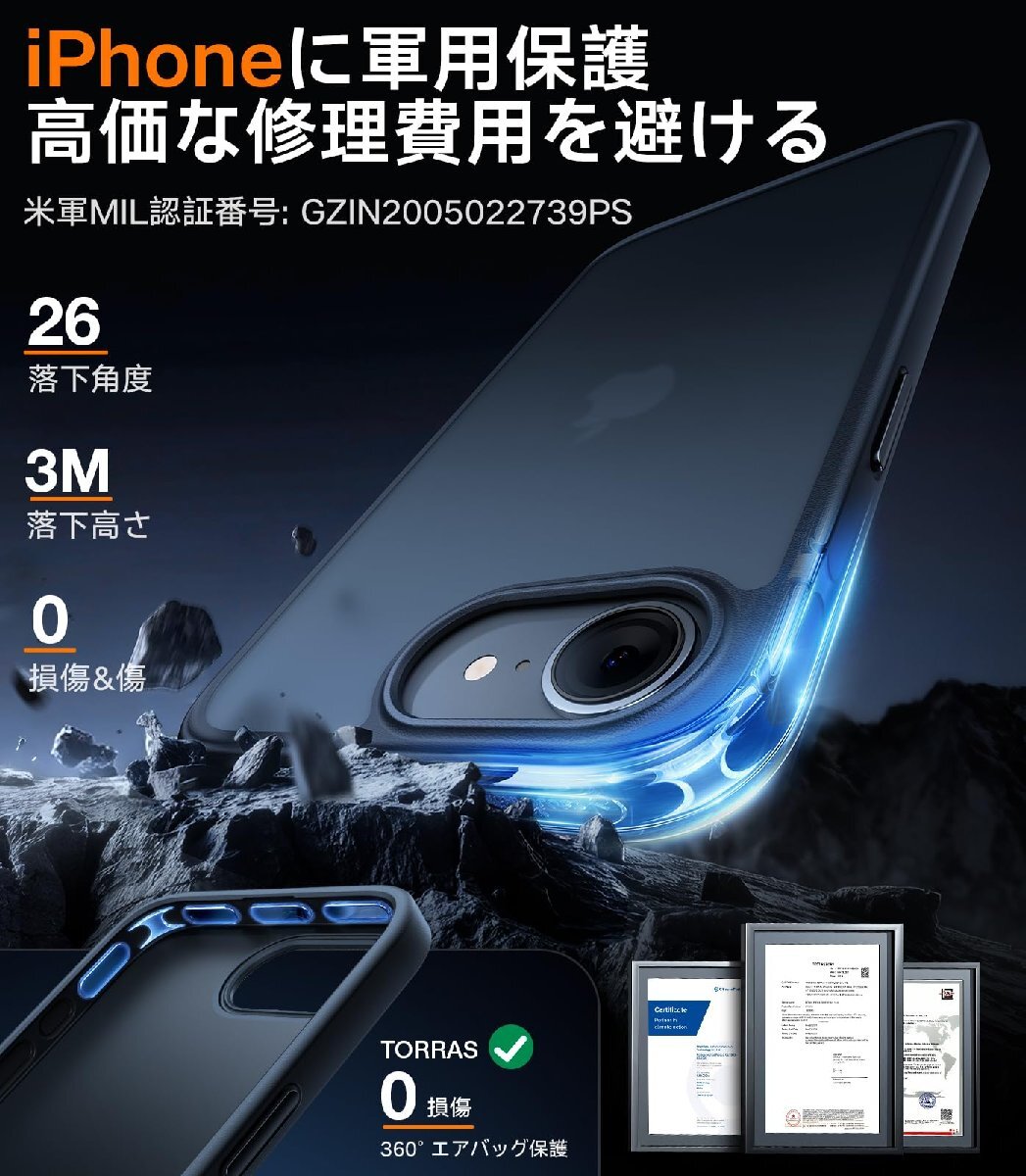 【耐衝撃保護進化を続ける・信頼の TORRAS】TORRAS はケース市場において、データ認定 7 年連続販売首位(2017-2023)を誇る業界のリーダーです。我々の最新作、TORRAS Guardian for iPhone 16e は、米軍規格の耐衝撃保護特許技術を駆使し、卓越した防〓性能を備えています。このケースは、どんな激しい落下シナリオにも対応できるように設計されており、iPhone 16e を全方位からしっかりと守ります。iPhone 16e を大切にするあなたに、信頼の TORRAS Guardianをおすすめします。不変の高品質と、最新の防〓技術を備えた究極のケースをお届けします。
