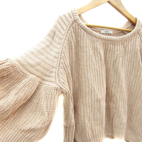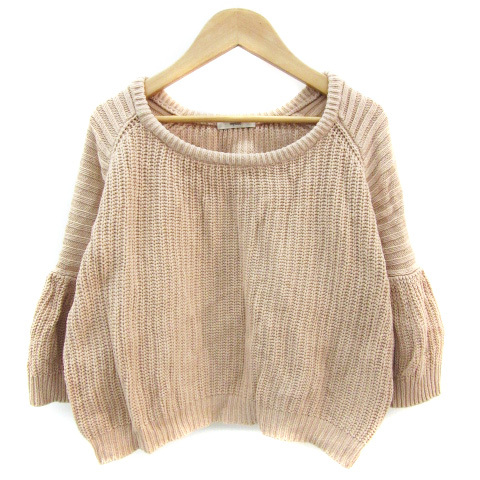 ミスティック mystic ニット カットソー ショート丈 七分袖 F ピンクベージュ /YM33 レディース