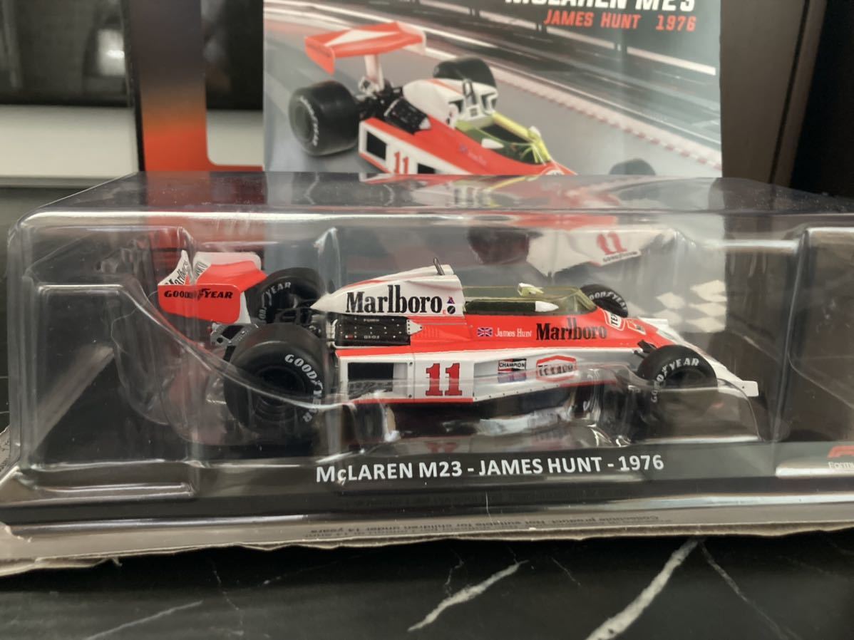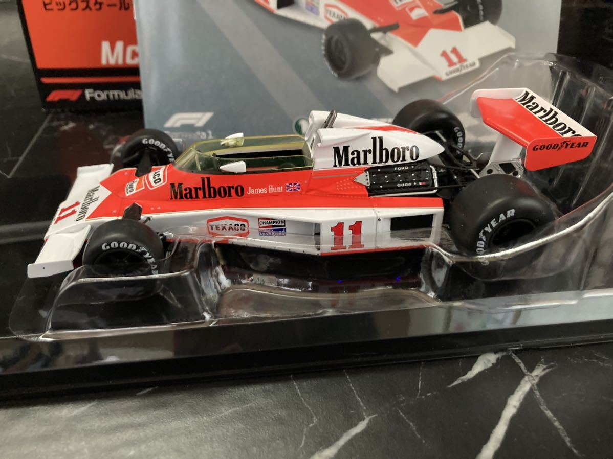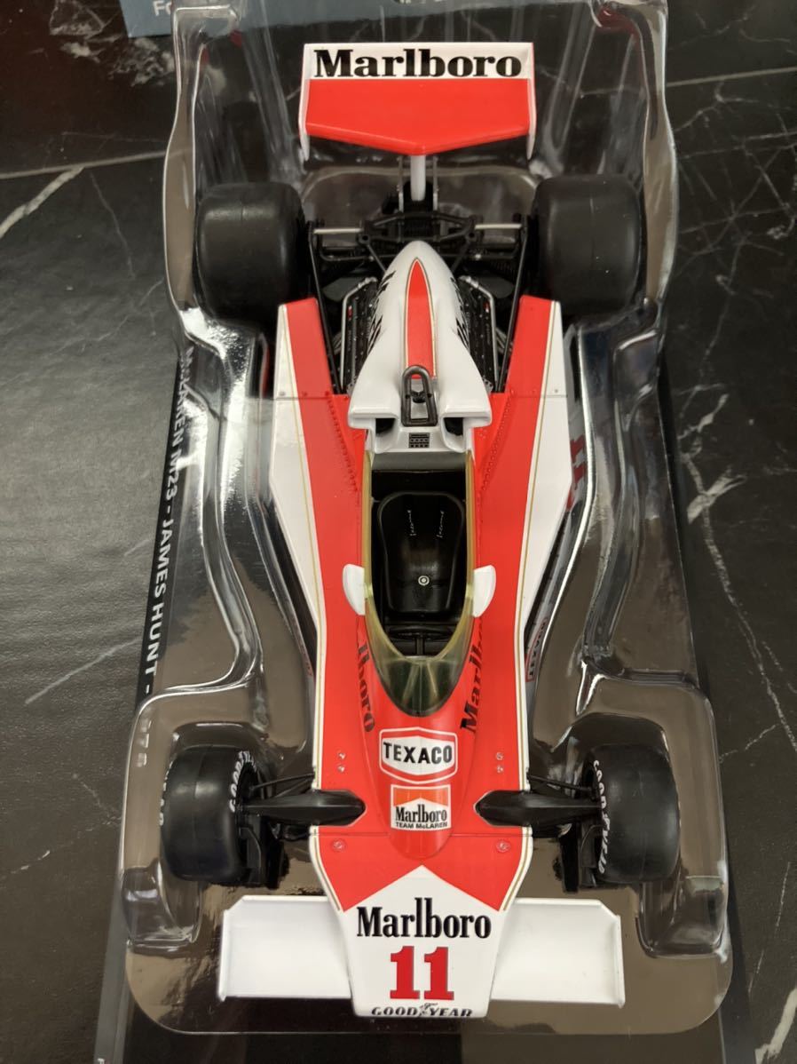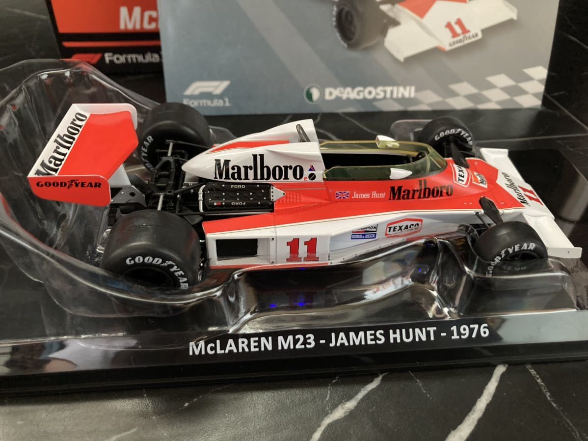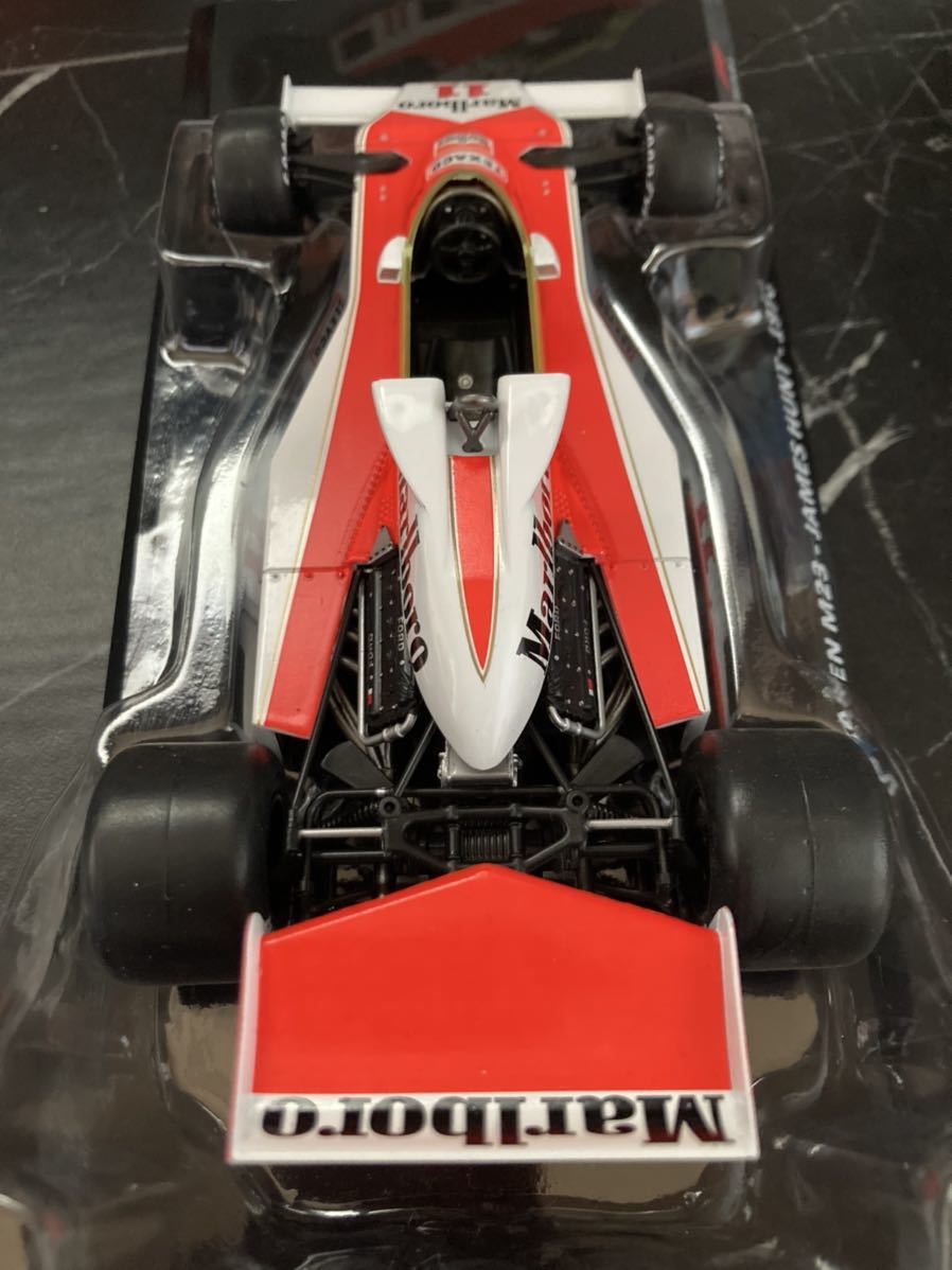 商 品 デアゴスティーニ ビックスケール F1マシンコレクション 1/24 マクラーレンM23 ジェームス ハント マルボロ仕様。市販デカールを購入してマルボロ仕様に変更しております。