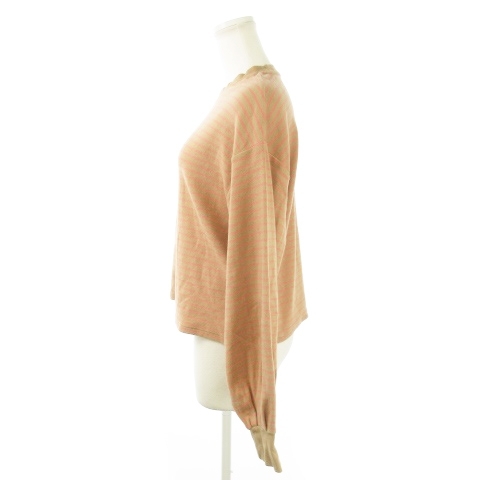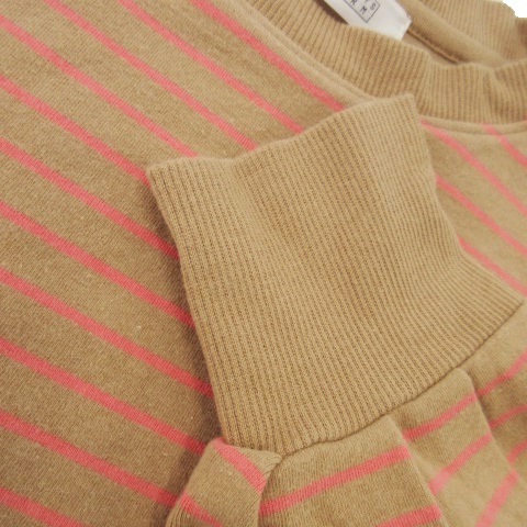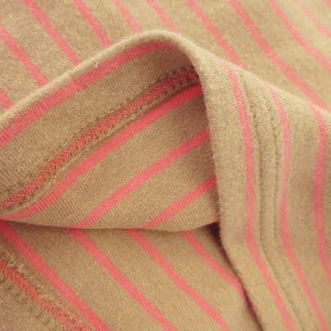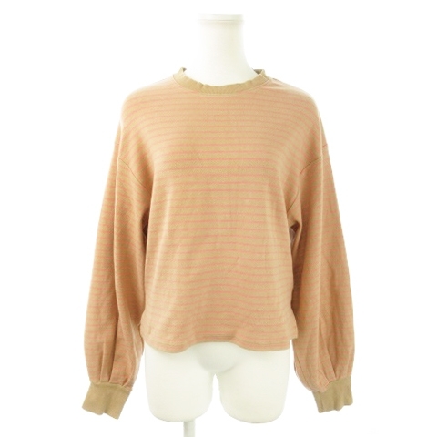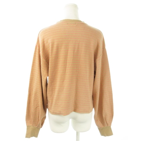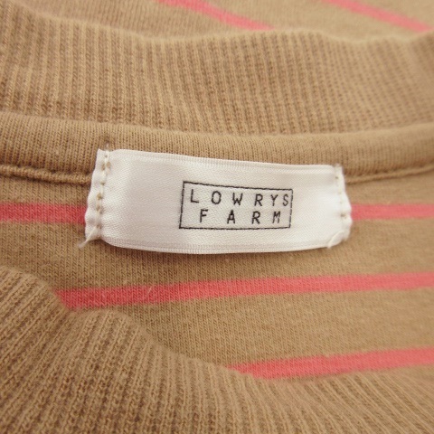 ローリーズファーム LOWRYS FARM カットソー クルーネック 長袖 ショート丈 ストレッチ ボーダー F ベージュ /AO10 レディース