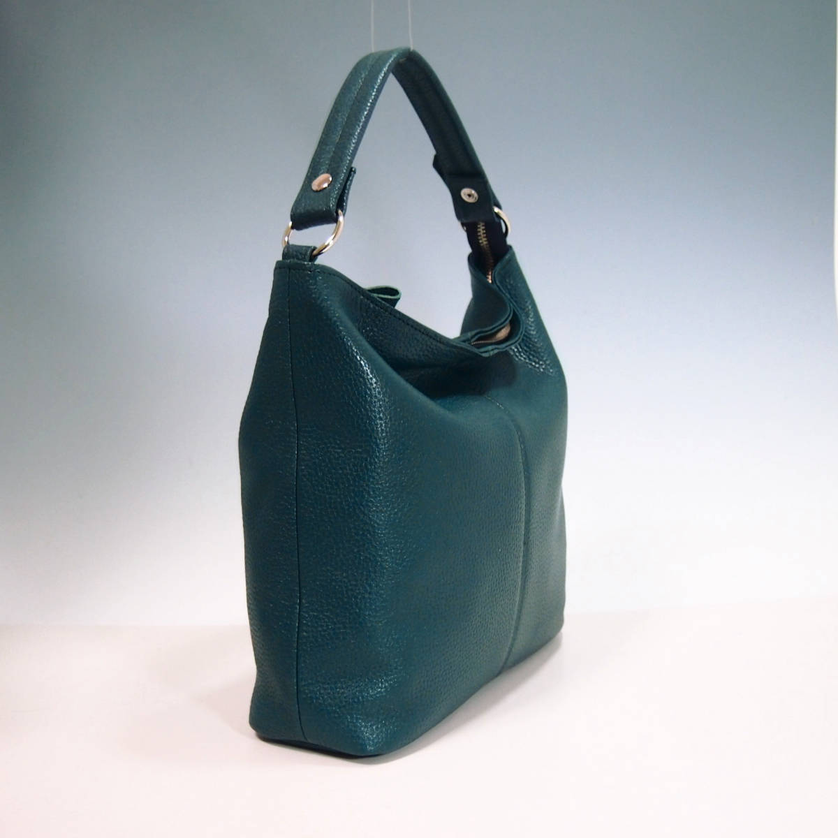 ★新品★ハンドメイド★日本製▲ソフト牛革★2WAYショルダーバッグ★ブルーグリーン色★ハンドル取り外し可★