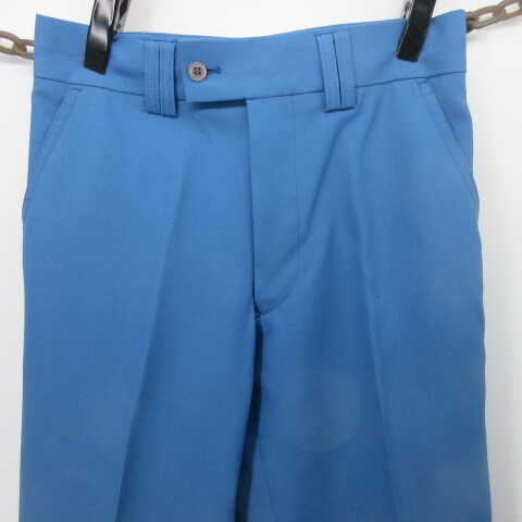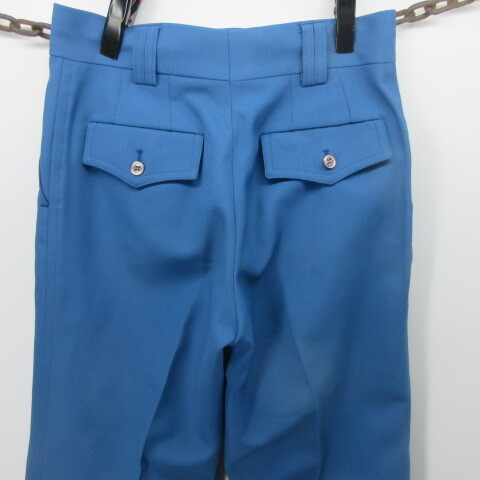 ★Goodsアメカジ古着 パンツ形はブーツカットYKK ZIP生地は シッカリしていますので、まだまだ着て頂けます★Size w29 表記 なしウエスト 36,5cm(73cm)股上 28,5cm , 股下 86cm ,裾幅 24cm, 総丈 111cm 渡り 30cm★Condition 10/6内側の生地に黄ばみ、解れ前上に解れ、電線多少の汚れ裾上げはしていません使用頻度は低いです★Material ? POLYぽい★Color 青★Made in 表記なし