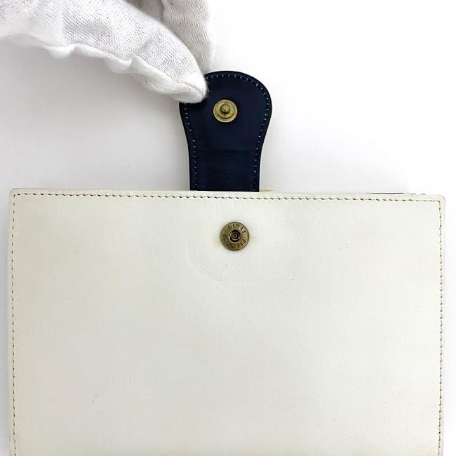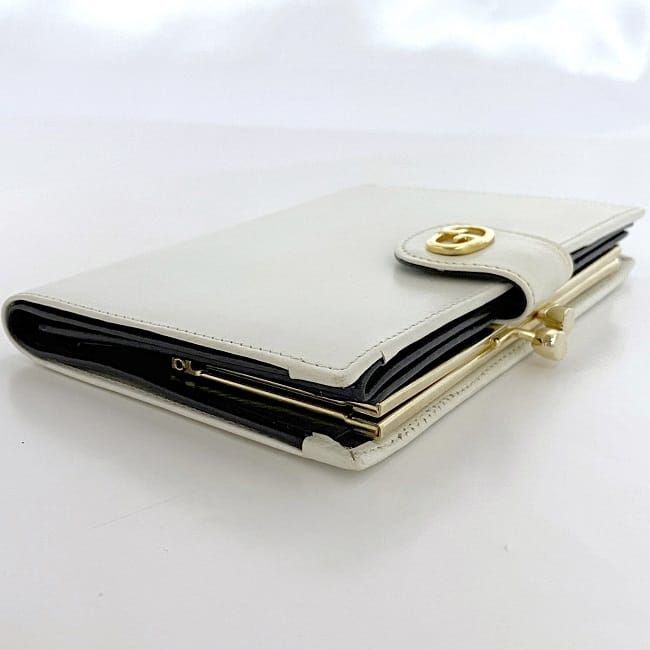 | コメント | ホワイトカラーが上品で爽やかな印象のGUCCIの折り財布。がま口タイプの小銭入れで使い勝手も良いお品物です。 |