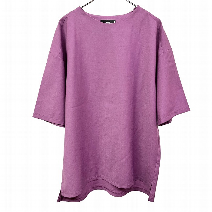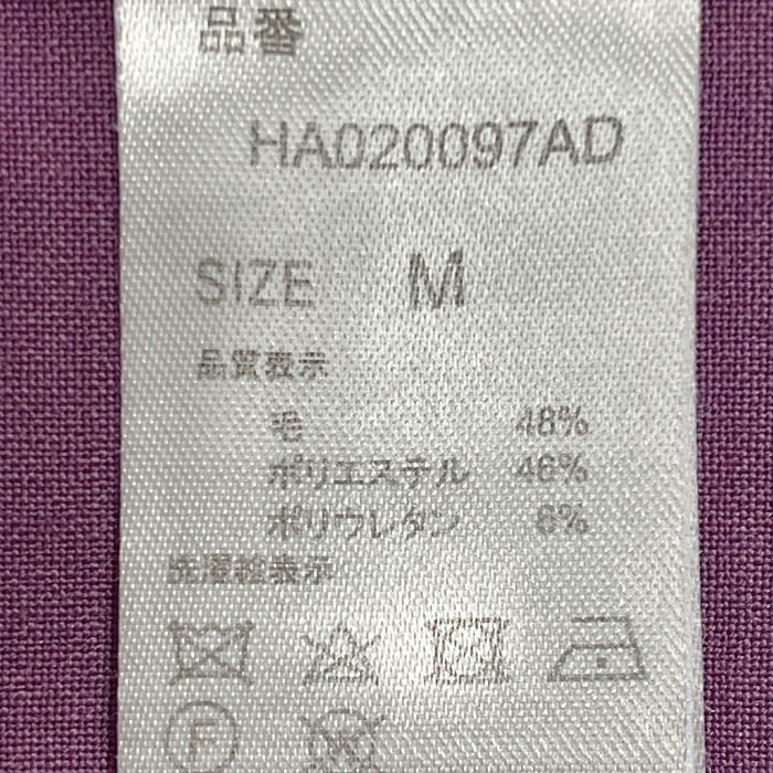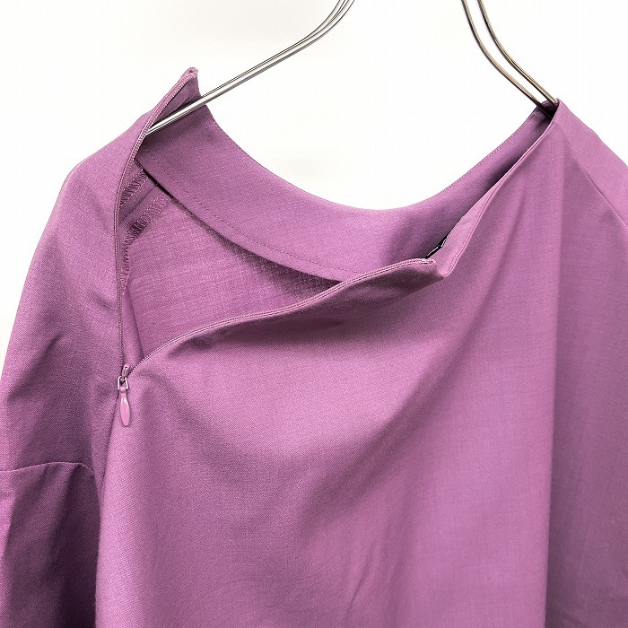 商品タイトル | ハレ HARE プルオーバーシャツ ノーカラー 左肩にファスナー 無地 5分袖 毛×ポリエステル×ポリウレタン M パープル 紫 レディース |