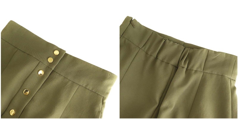 【仕様】・ウエスト後ろ部分ゴム入り ・左サイドファスナー ・裏地あり ・フェイクボタン