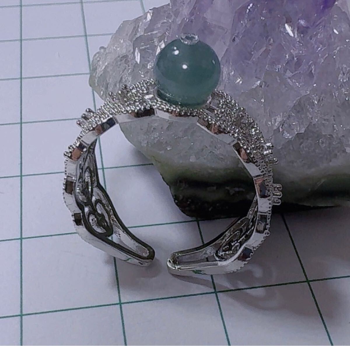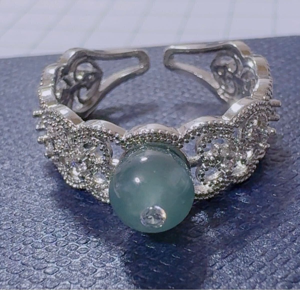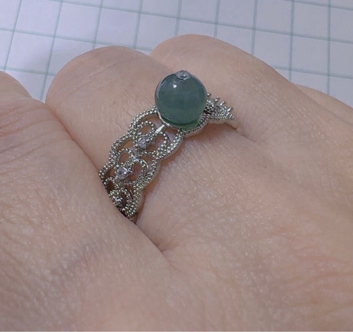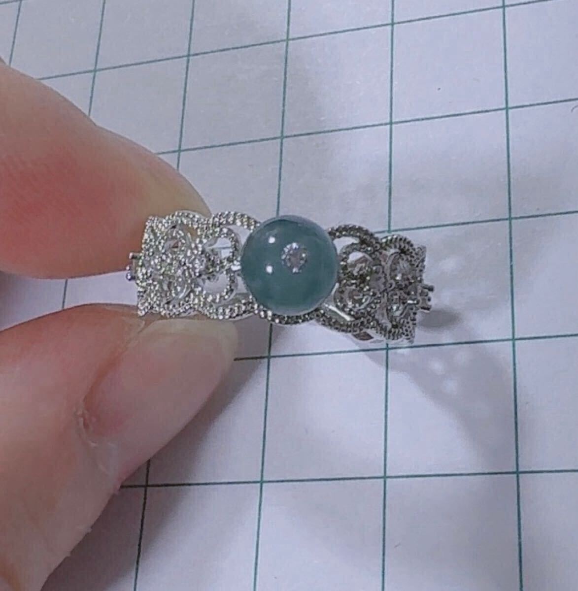 天然本翡翠《本物保証》 翡翠リング約15号 藍水 一点物 希少 縁起物 お守り パワーストーン カラーストーン