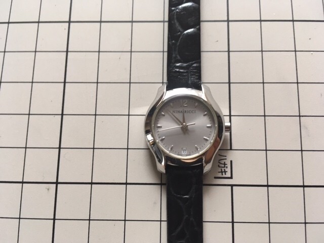 良品 レア NINA RICCI ニナリッチ SWISS MADE デイト N016.12 シルバー文字盤 クオーツ レディース 腕時計