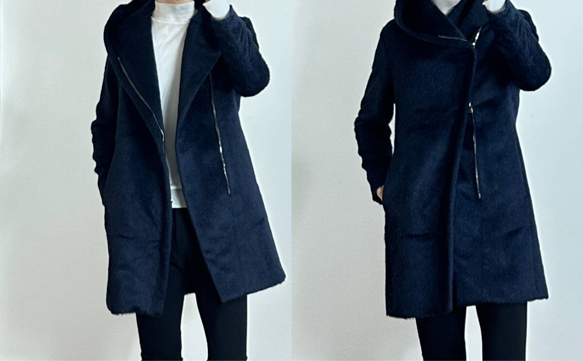 定価27万 junhashimoto ALPAKA WOOL WRAP HOODED COAT 2 ネイビー ジュンハシモト ラップコート wjk akm 1piu
