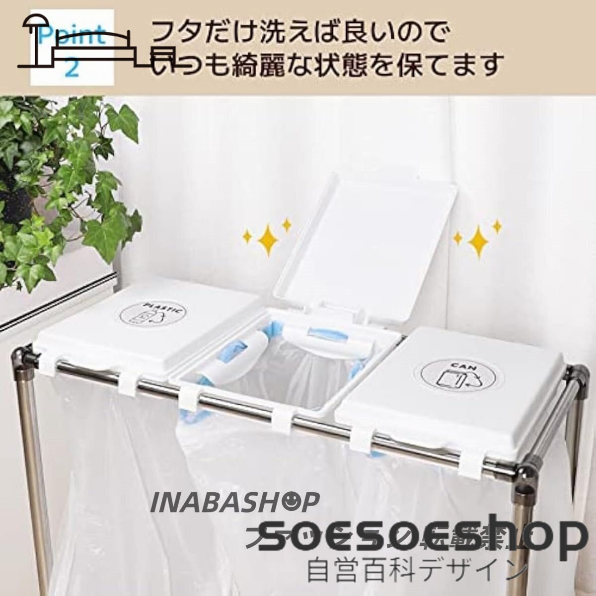 【無駄な機能がなく・3分別ゴミ袋ホルダー】ペットボトルや空き缶・ビンなどの資源ゴミの分別に便利なゴミ袋ホルダーです。(投入口サイズ約:19×23cm)一般的な分別ゴミ箱と違って、外装がなく中身が見えるタイプで、ゴミの溜まり具合が一目瞭然なので、捨てるタイミングも計りやすいです。
