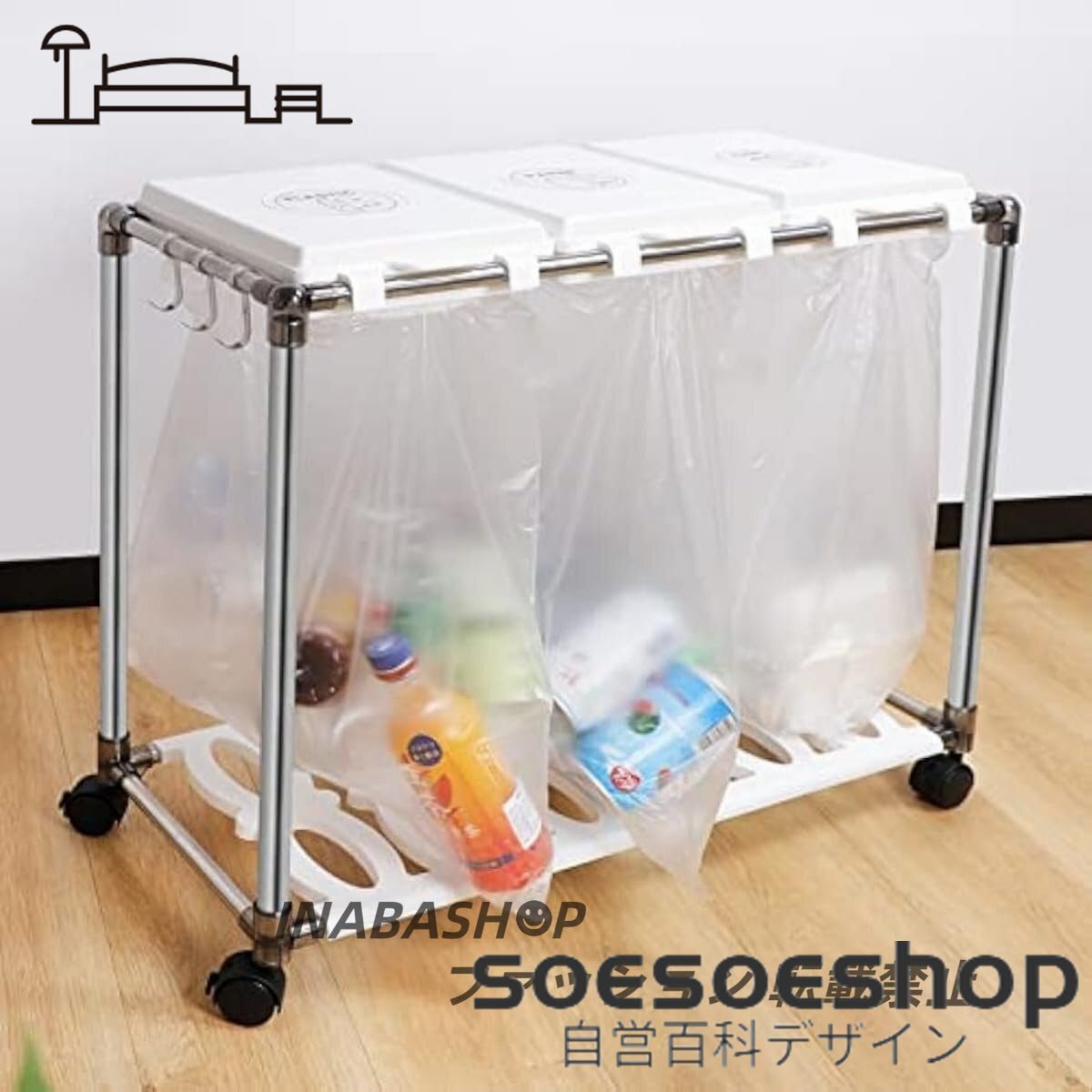 ゴミ袋ホルダー 分別 ゴミ箱 キャスター付き ダストワゴン蓋付き ゴミ袋スタンド スリム縦開き おしゃれ ダストボックス レジ袋 ポリ袋エコ