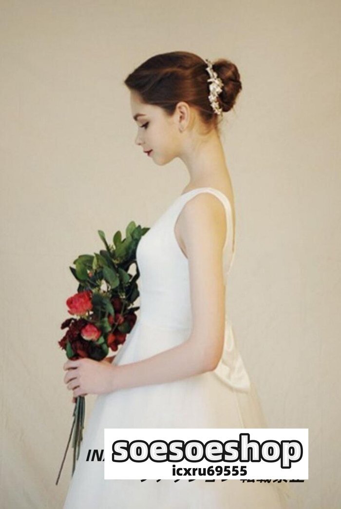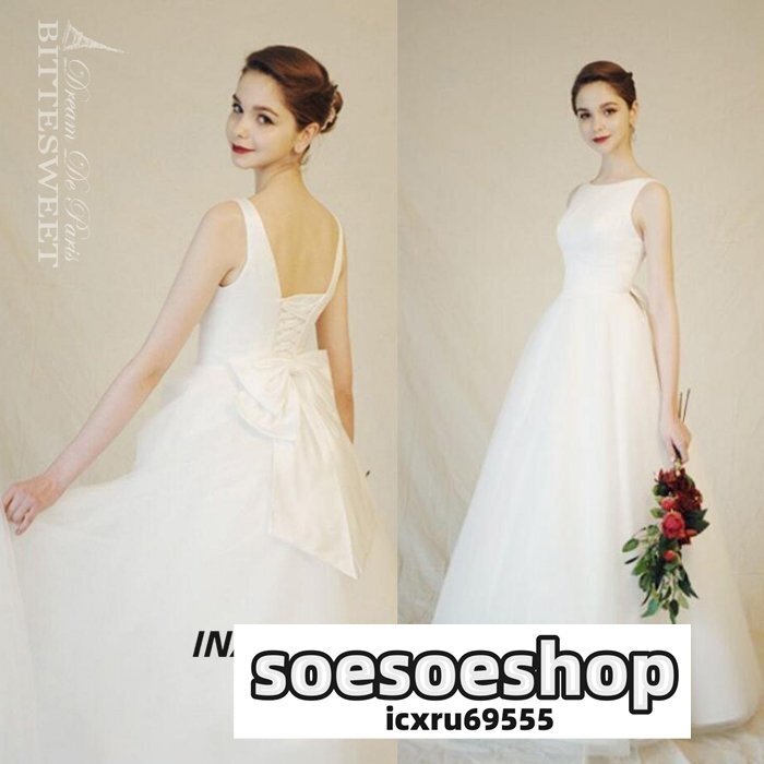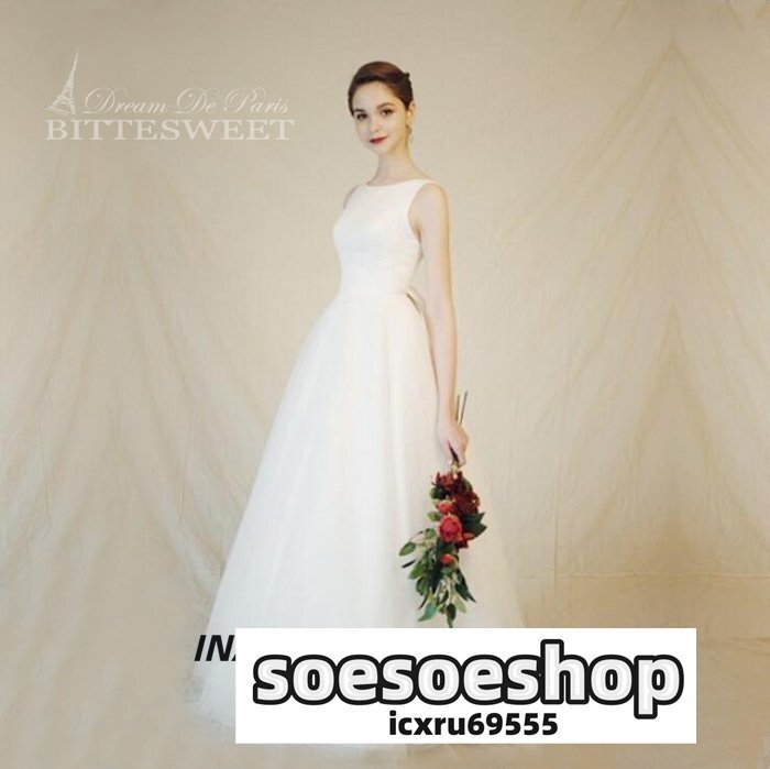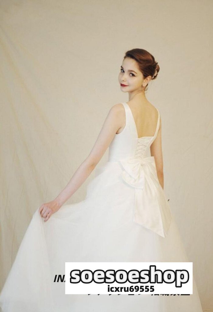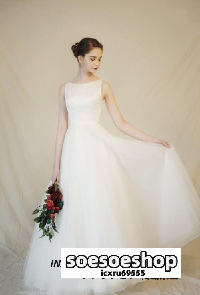 ノースリーブ ウエディングドレス ウェディングドレス Aライン 編み上げタイプ 前撮り 後撮り 披露宴 結婚式 演奏会 発表会 海外挙式ドレス