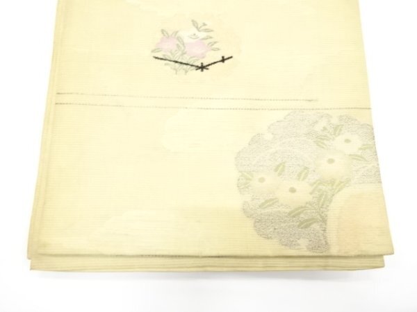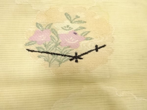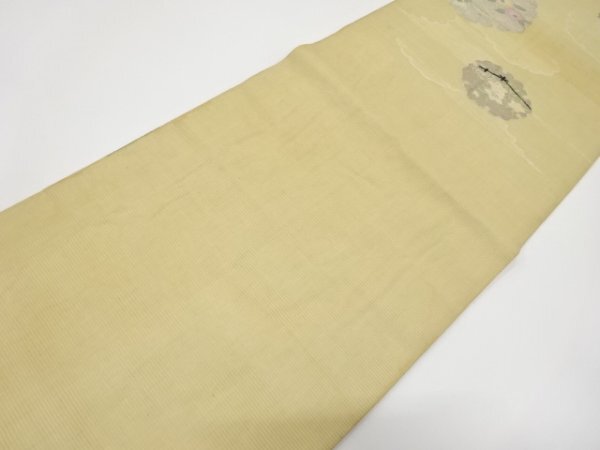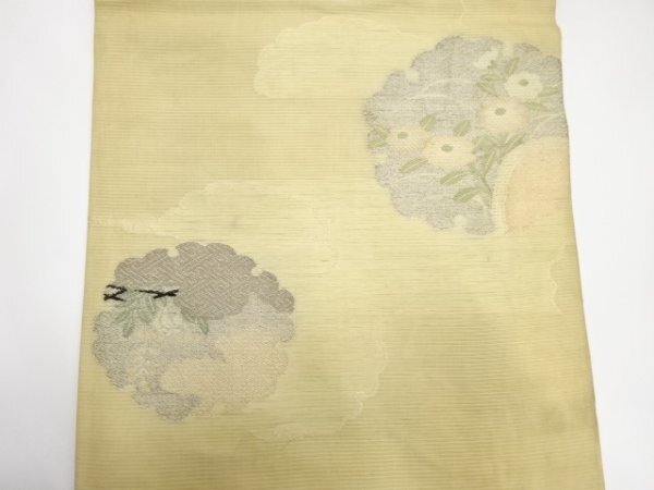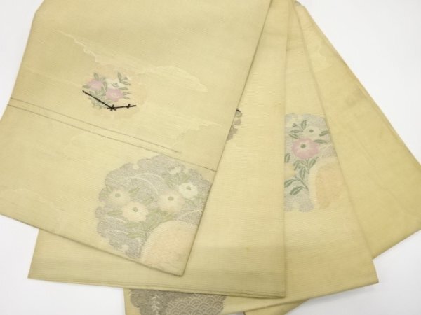 ys7318331; 紗 雪輪に万寿菊模様織り出し丸帯(材料)【アンティーク】【着】