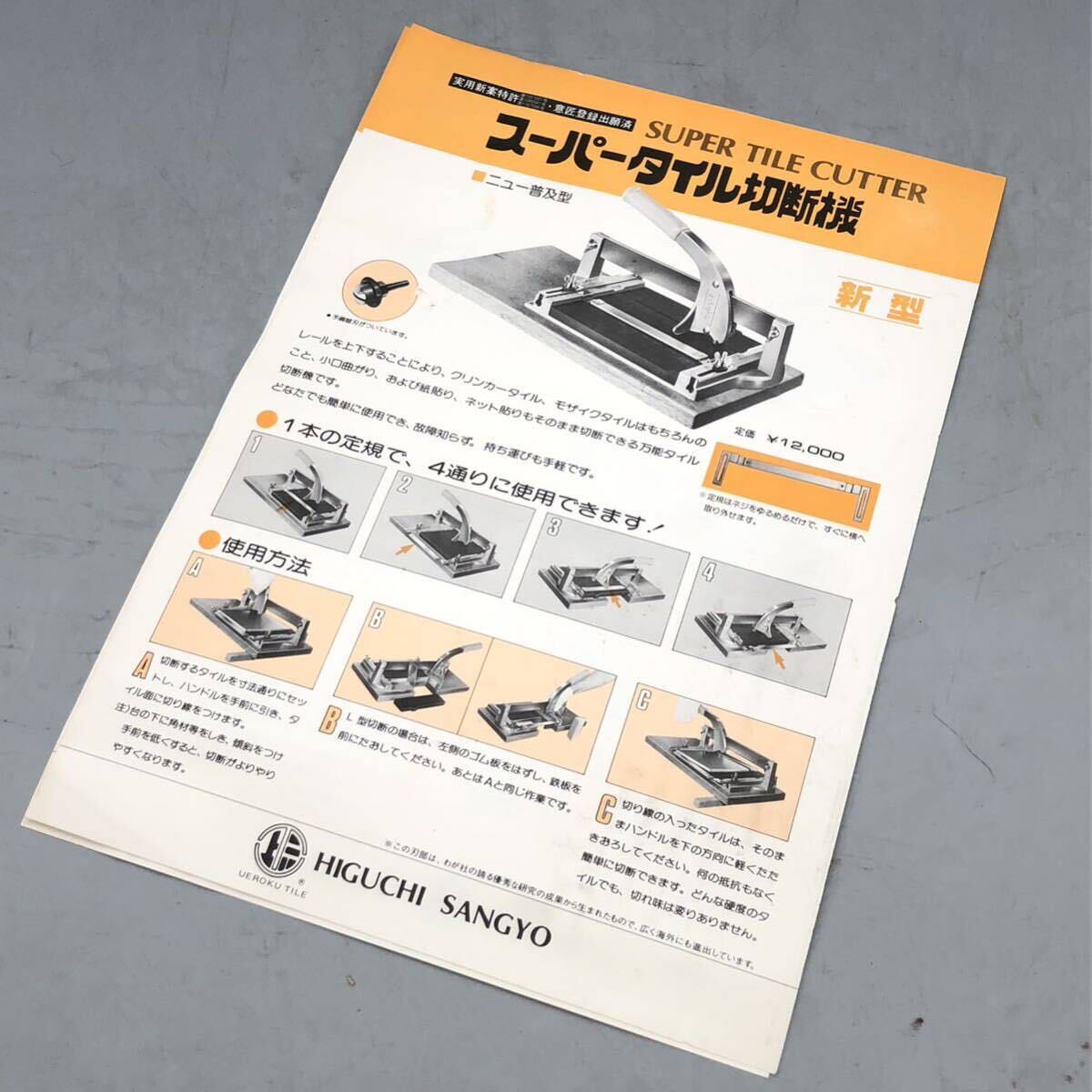 【未使用】HIGUCHI SANGYO 樋口産業 スーパータイル 切断機 本体 普及型 クリンカー モザイクタイル 小口曲がり 切断 業務用 台座 箱付き