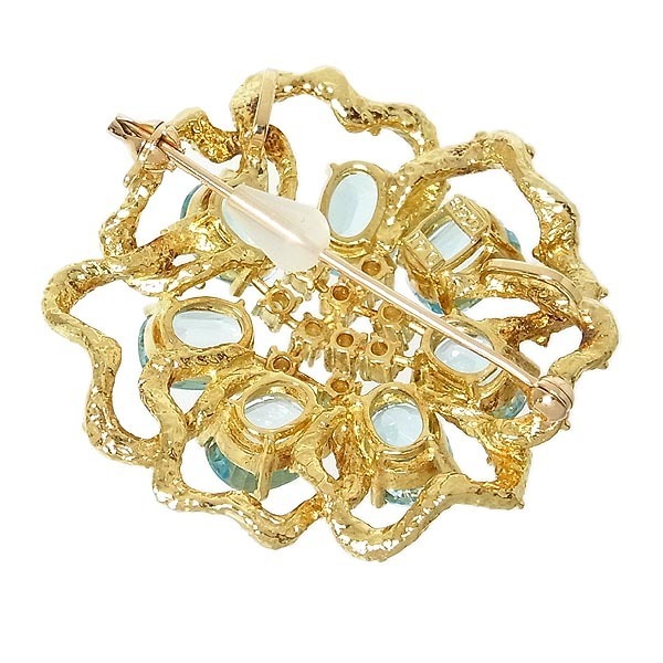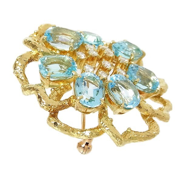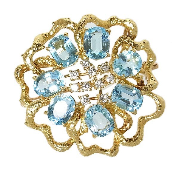 田崎真珠/TASAKI k18ブルートパーズメレダイヤ入 花柄デザインブローチ |