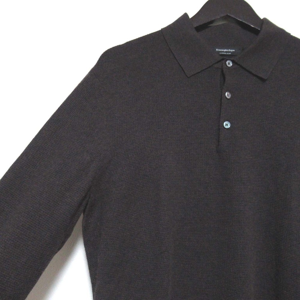 商品名:美品 Ermenegildo Zegna エルメネジルドゼニア CASHSETA LIGHT カシミヤシルク 長袖 ニット ポロシャツ 52サイズ ダークブラウン