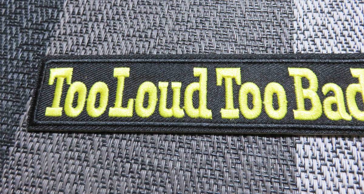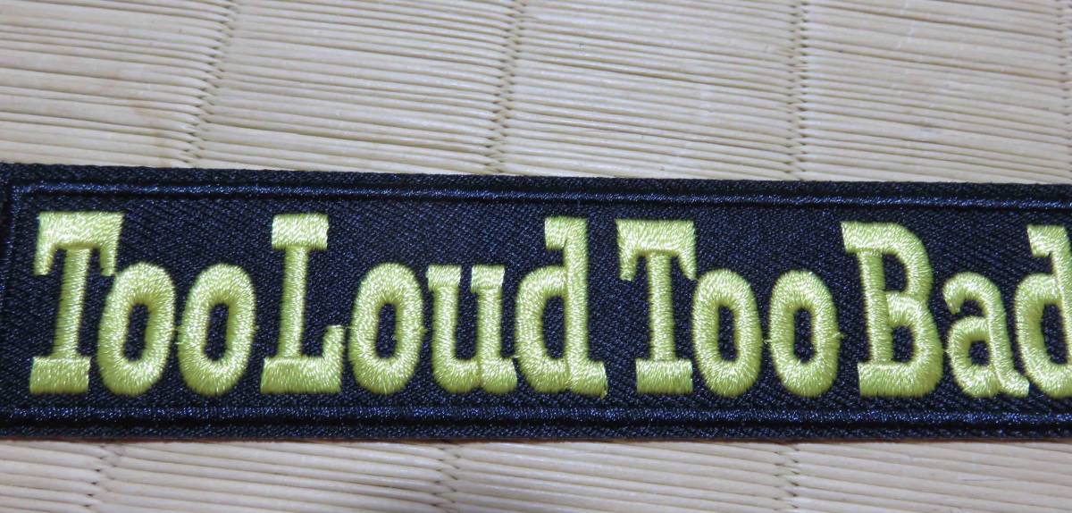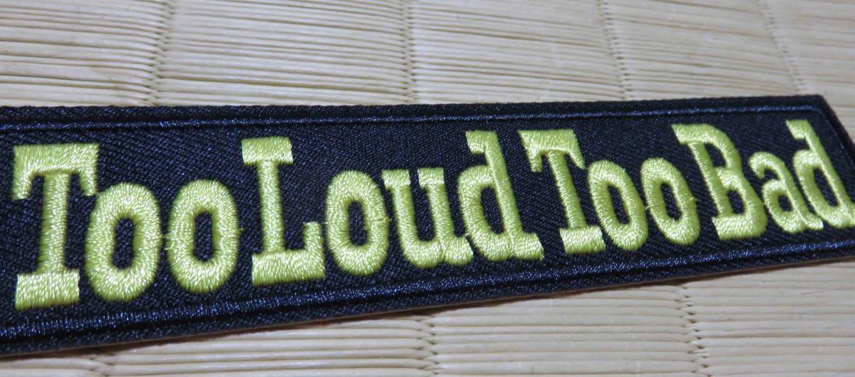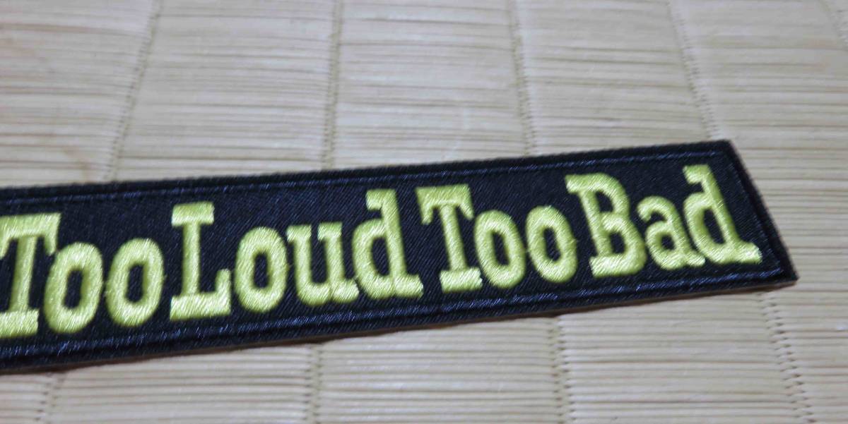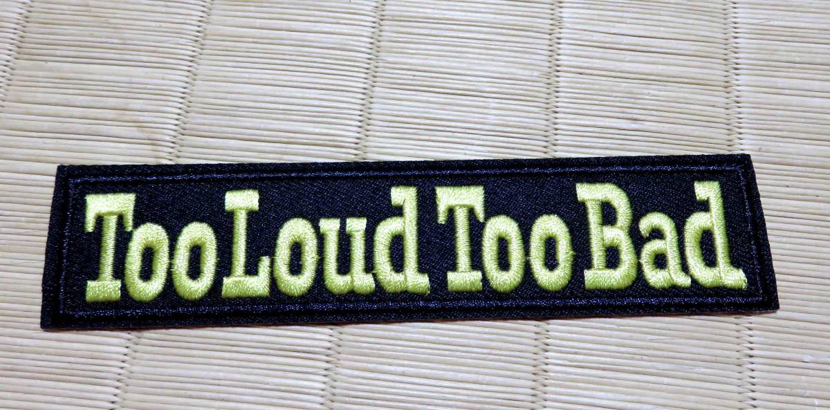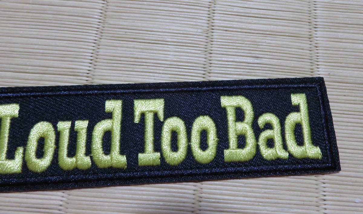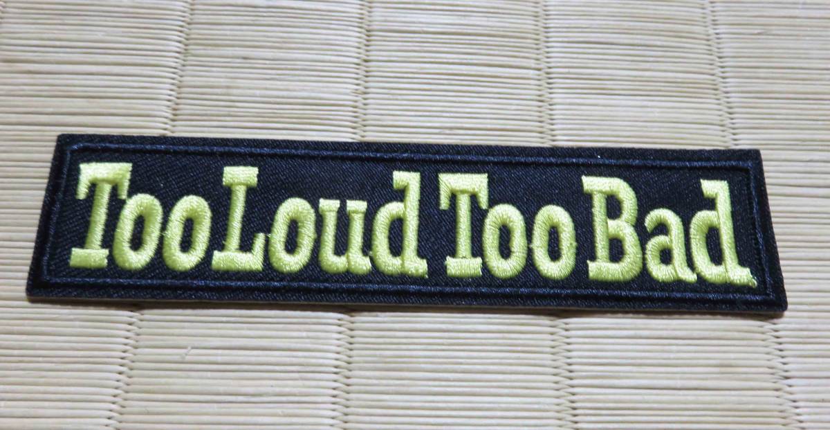 黒黄TLTB標語 長方形■新品バイカー軍団 Too Loud Too Bad アメリカ USA刺繍ワッペン◆バイク オートバイ 二輪車 ハーレー■衣服DIY