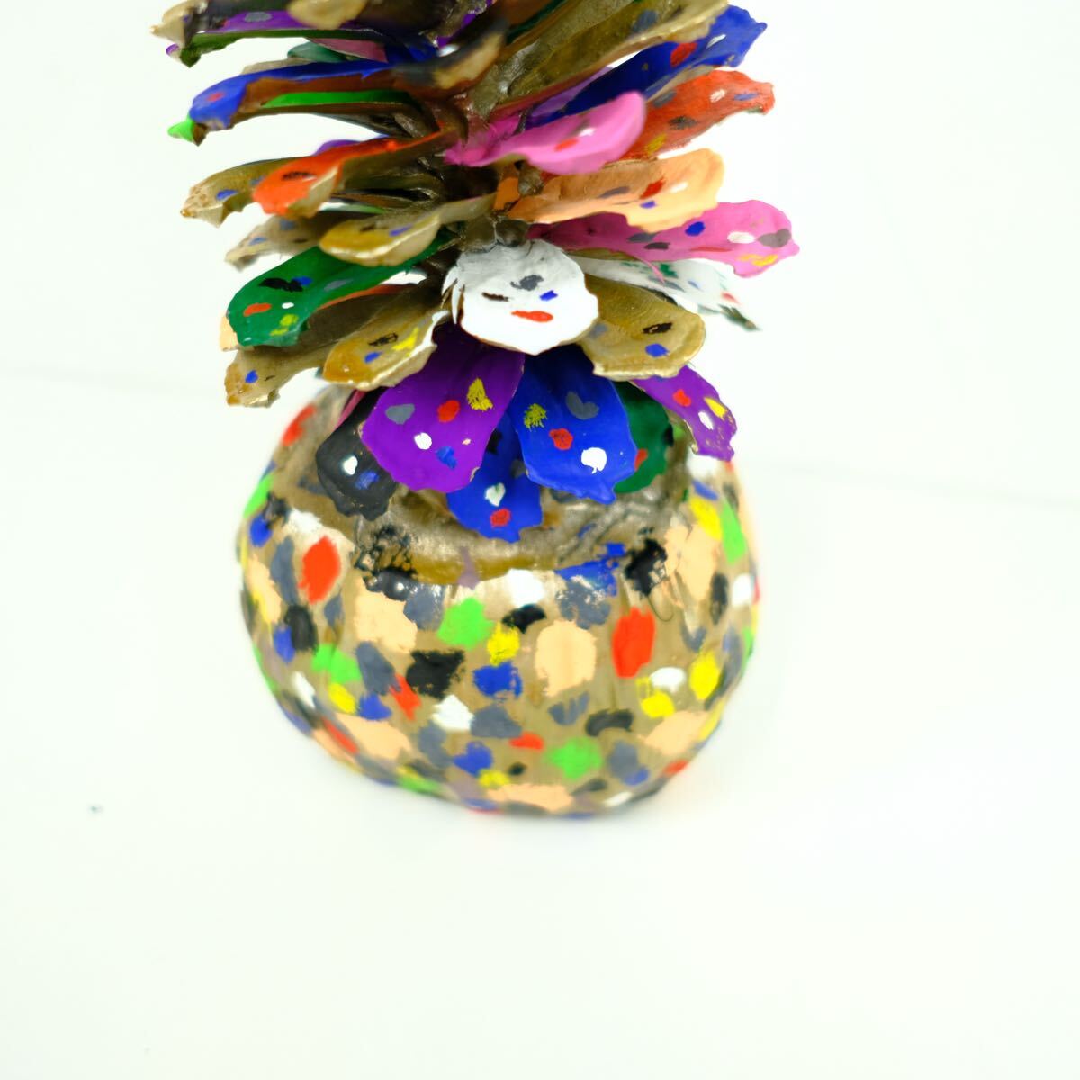 実の部分がココナッツ、葉の部分は松ぼっくりでそれらを組み合わせて製作されています。