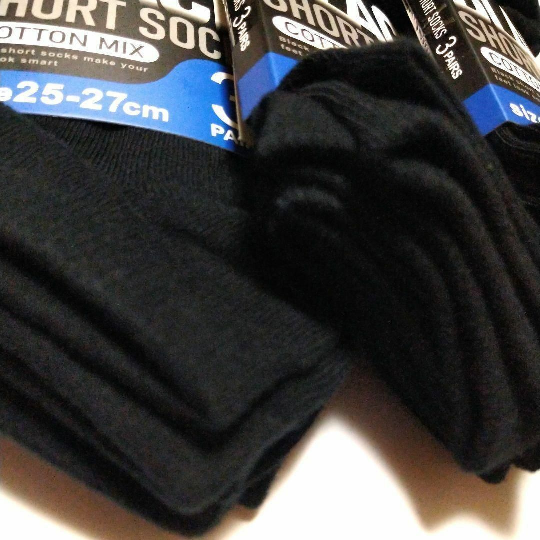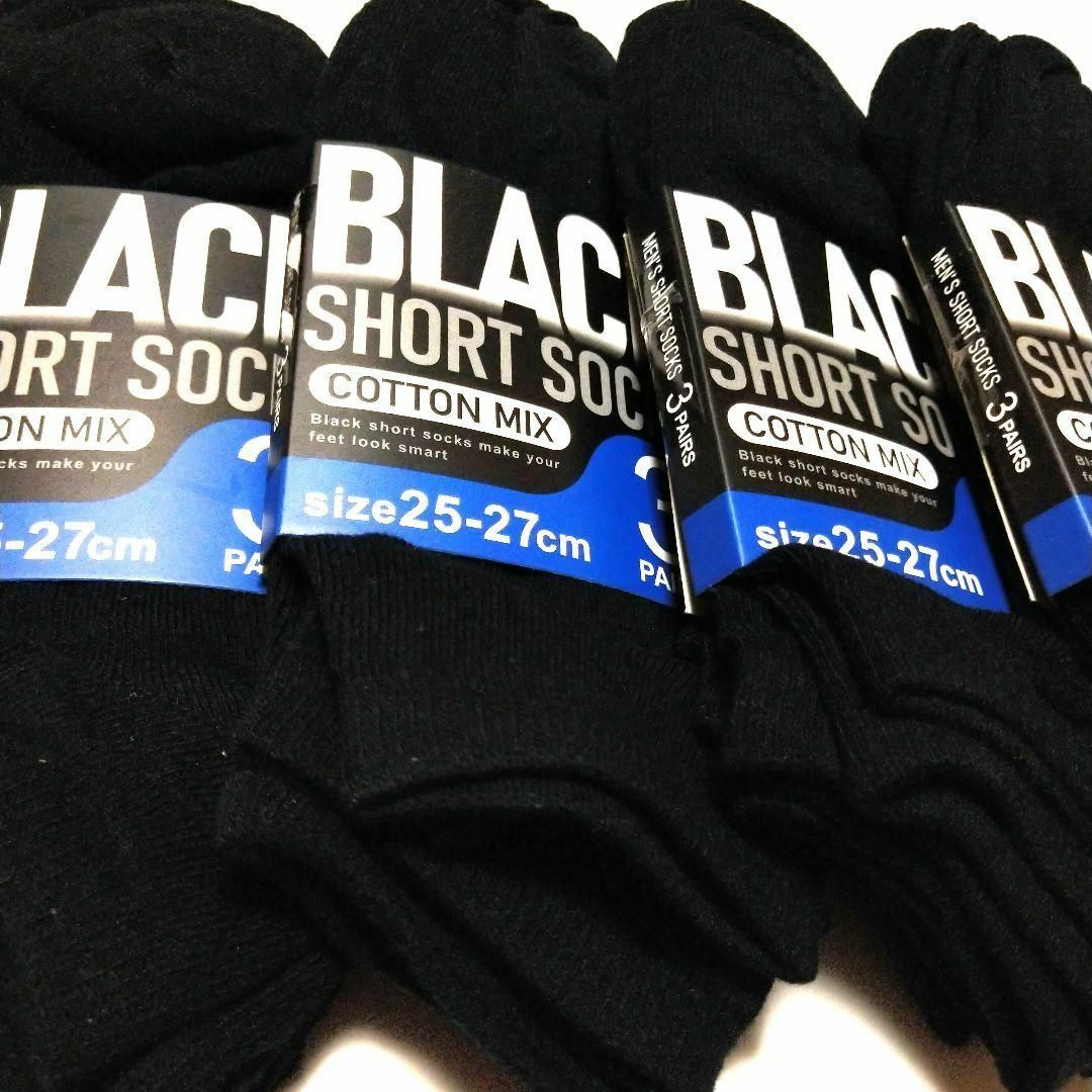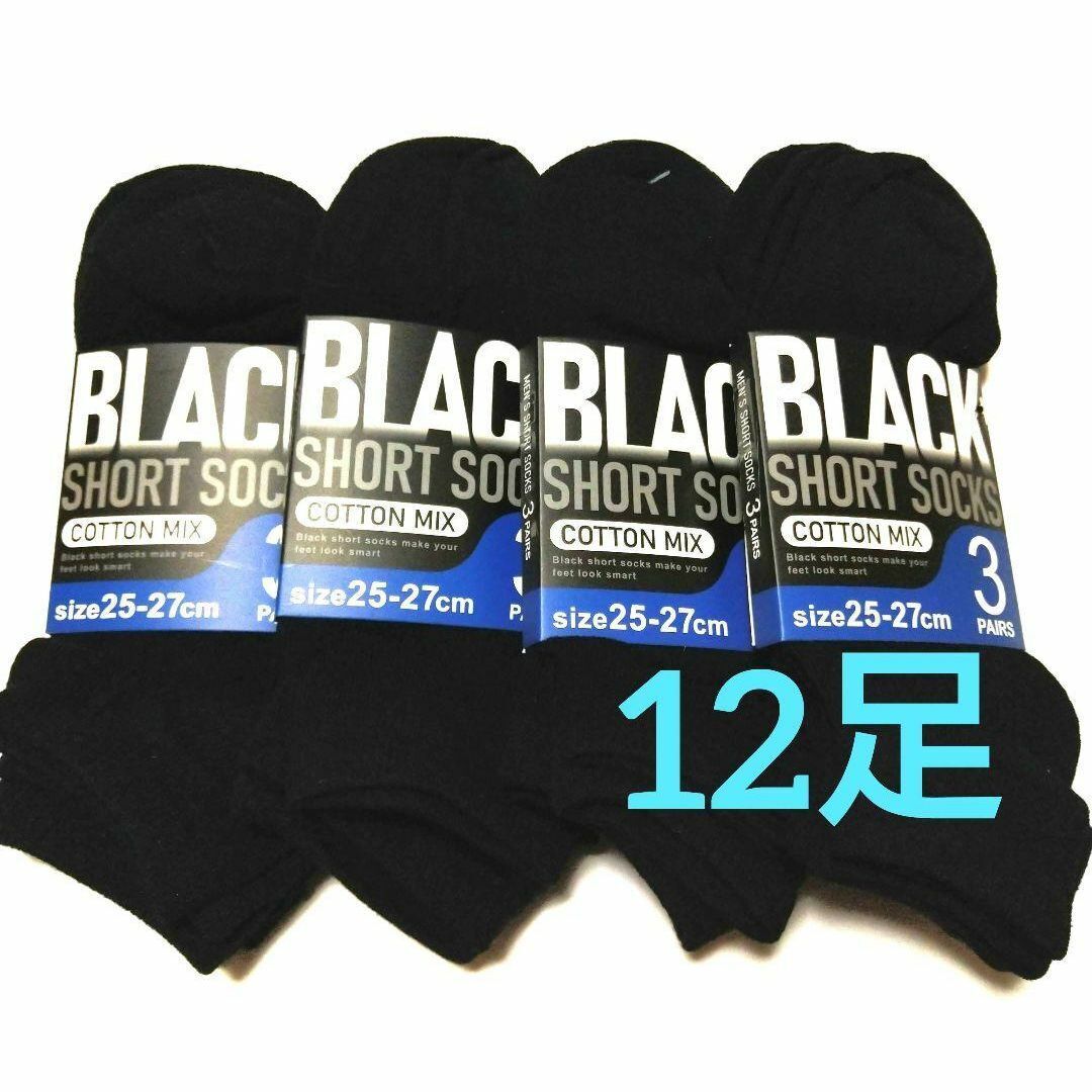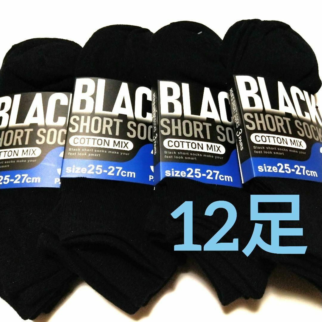 メンズくるぶし丈ショートソックス全12足 ブラック無地綿混定番洗い替え安心セット