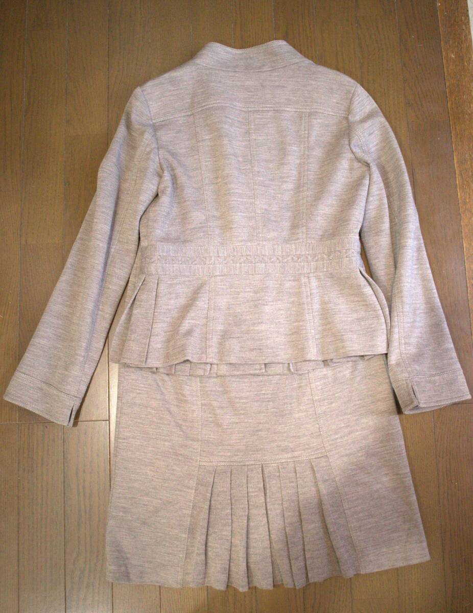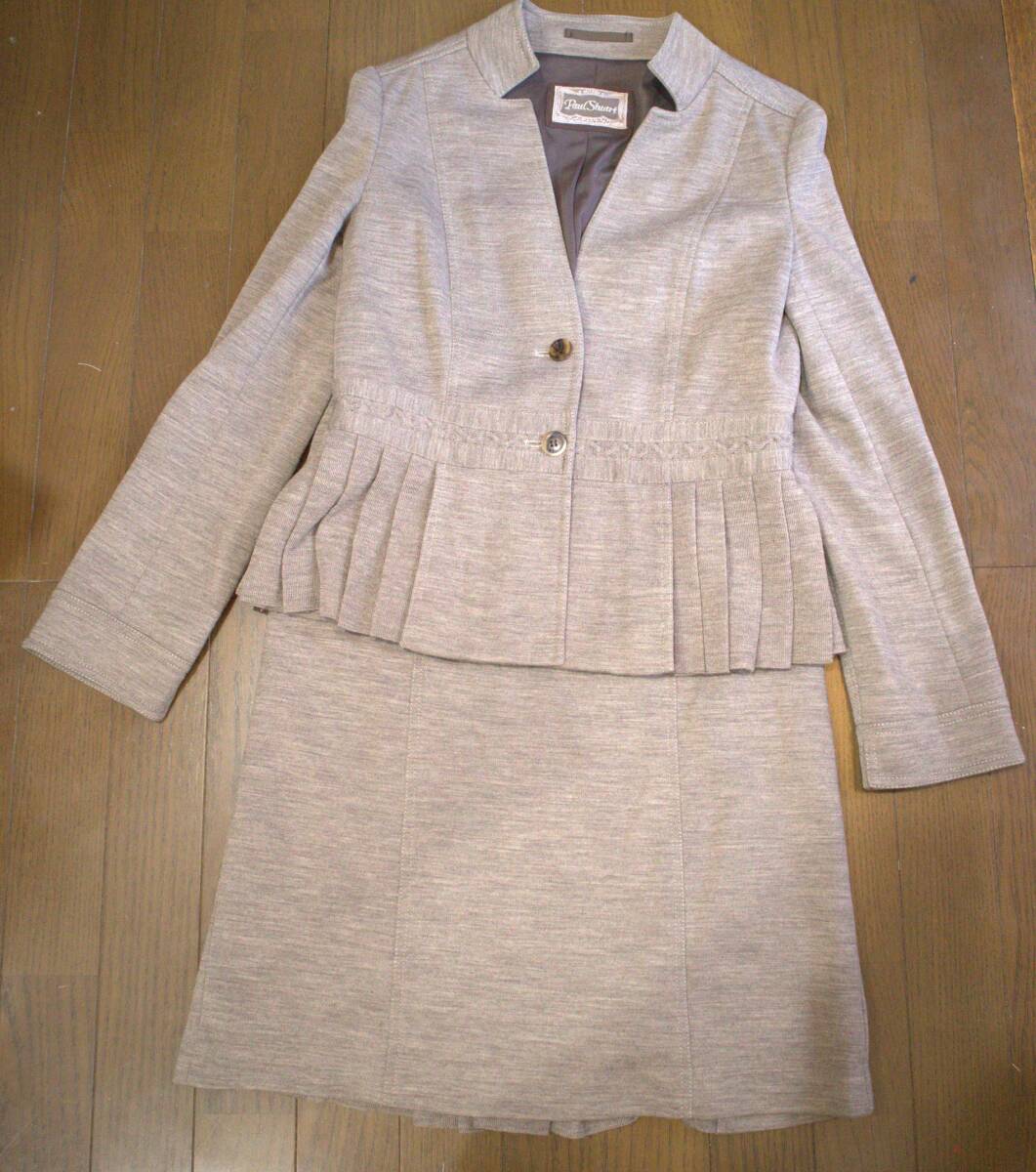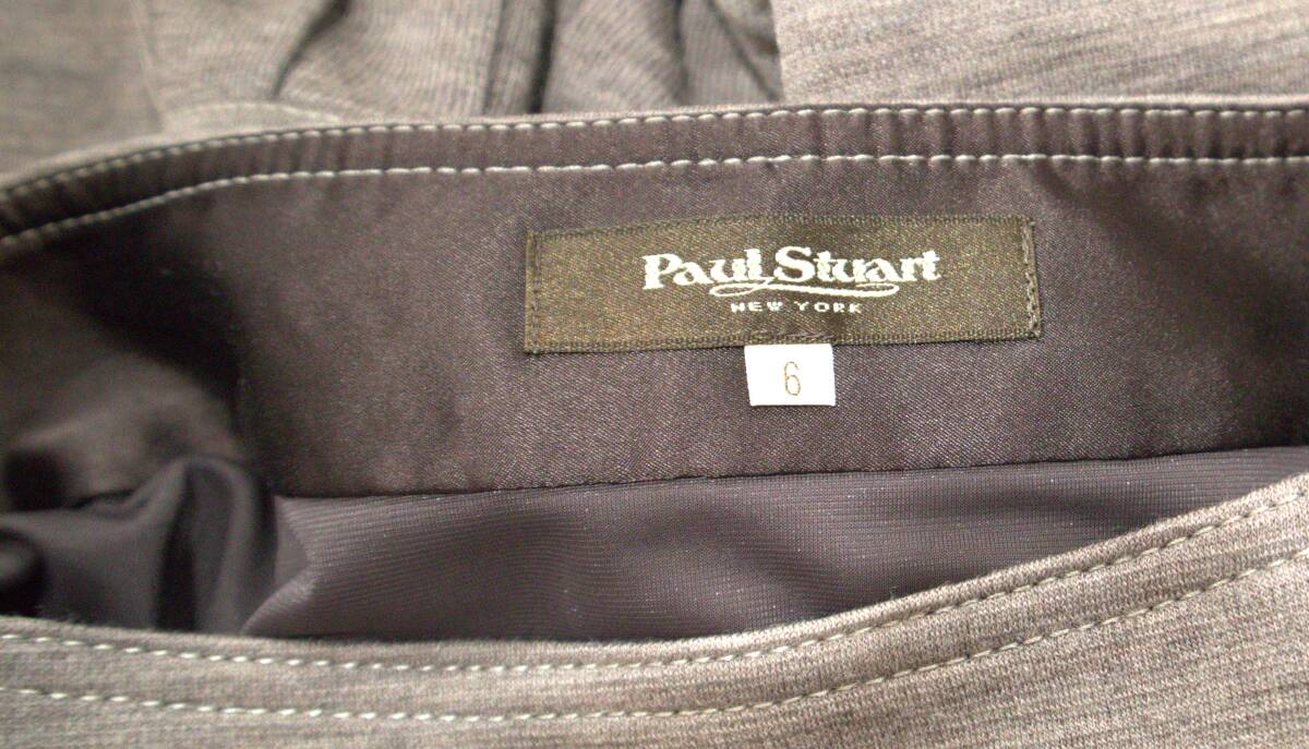 PAUL STUART ポールスチュアート ストレッチ スーツ セットアップ ノーカラージャケット プリーツ スカート グレー サイズ6