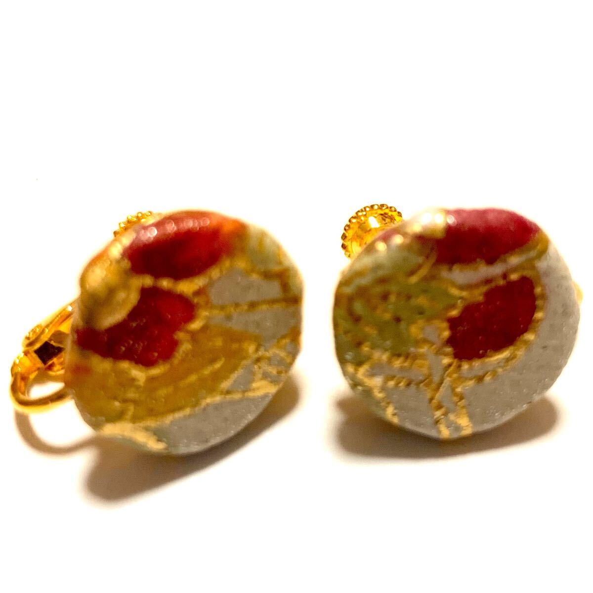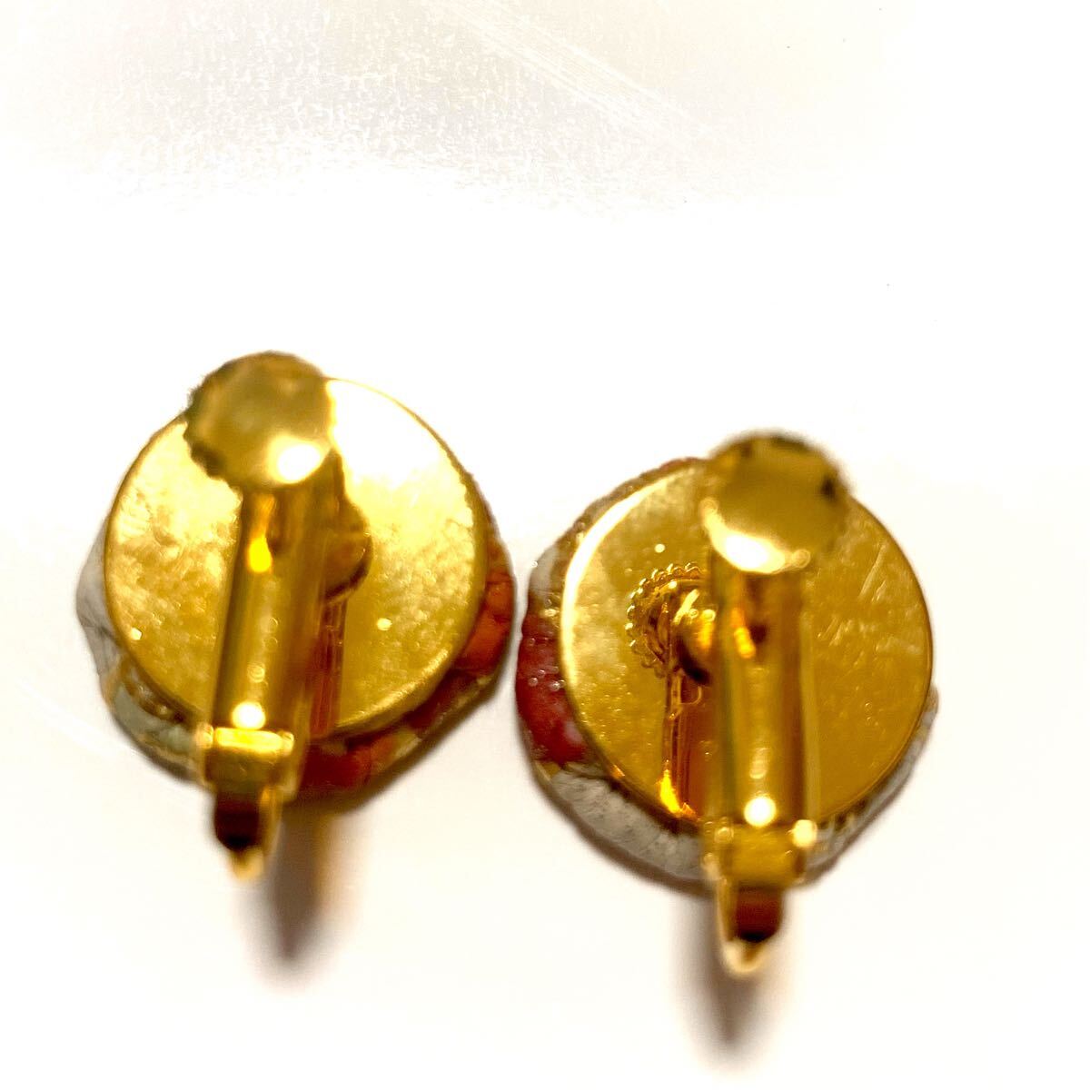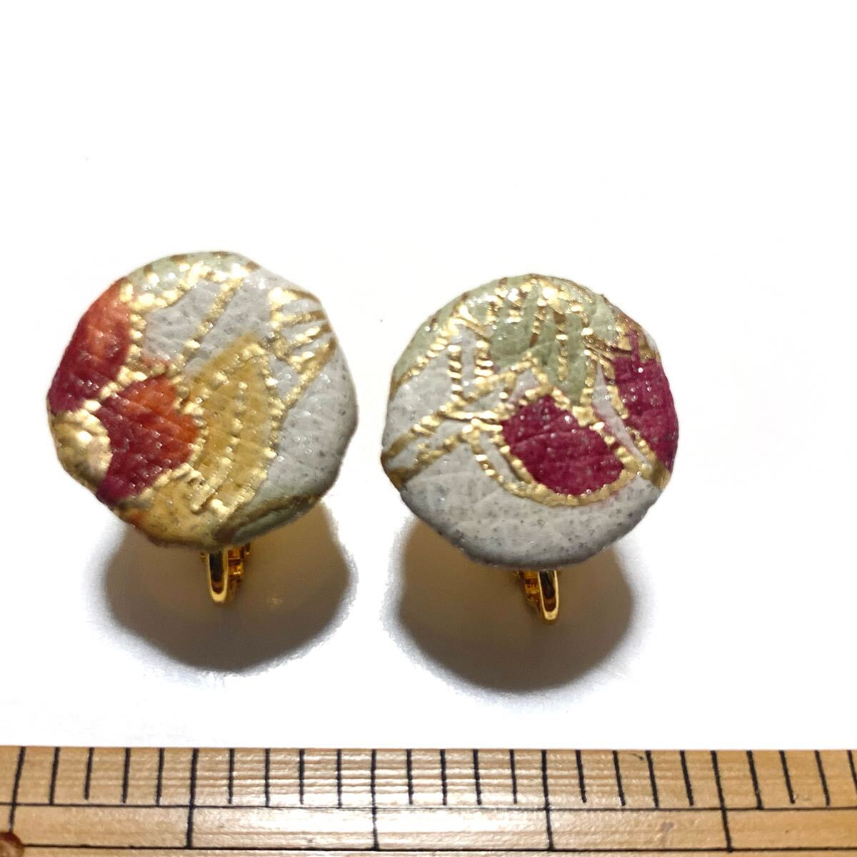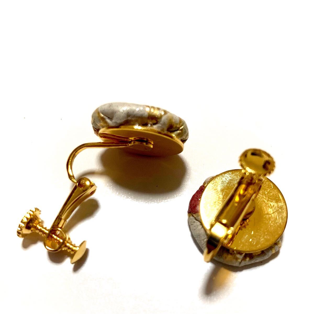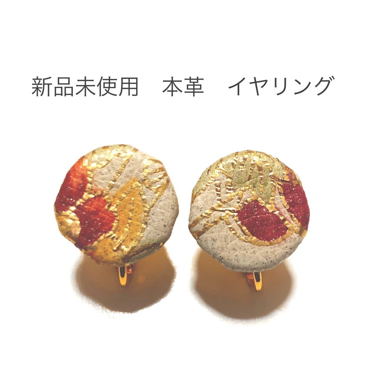 本革素材を用いたネジバネ式イヤリング。