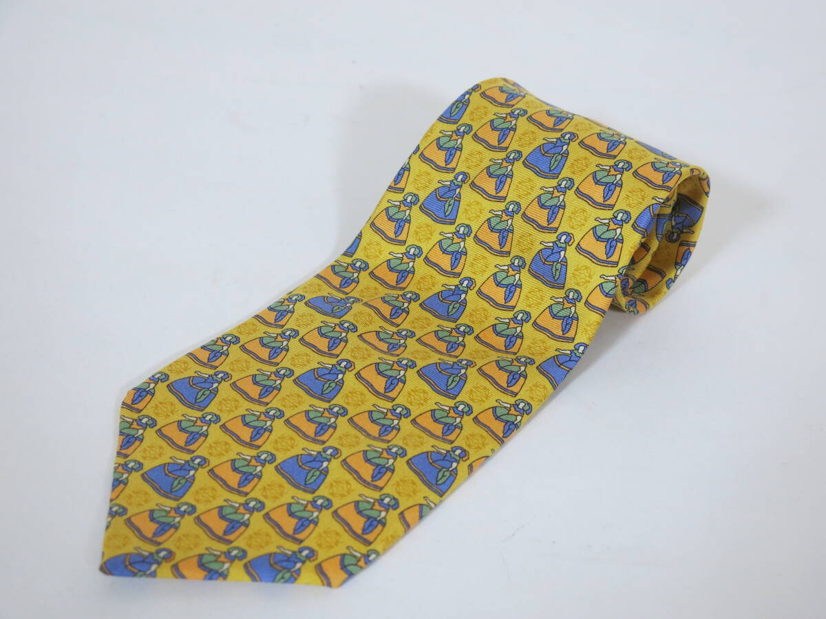 ロエベ・ LOEWE ネクタイ 総柄 人形モチーフ オレンジ/ブルー/グリーン スペイン製の中古品です ●内容・・・ 総柄 人形モチーフ ネクタイ ※保管品の為、未使用品ですが中古品として出品いたします ●外観・・・一度も使用していないので、綺麗な状態です ●配送・・・レターパックプラス(600円)