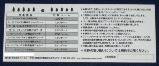 ★カーロフォレスタ グリーンチケット 全日対応宿泊券★