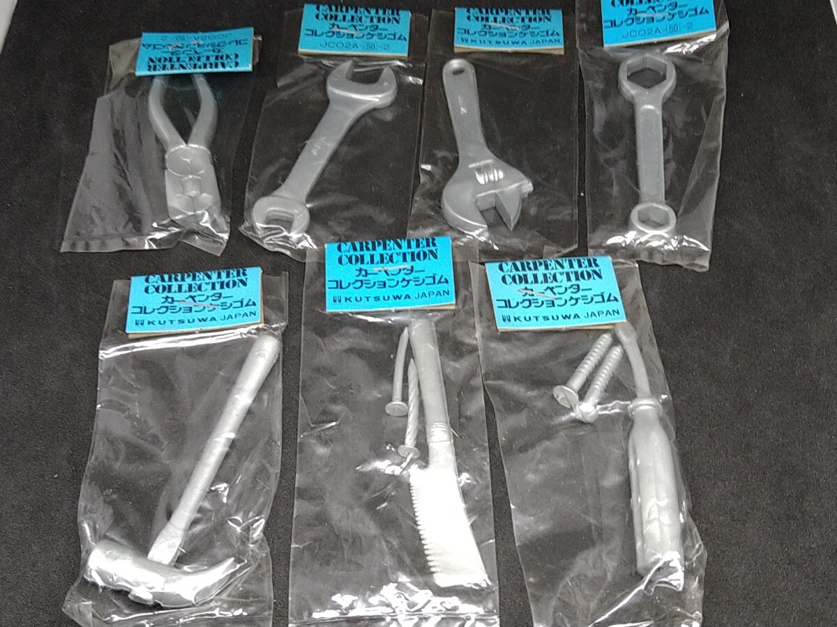 説明必読 クツワ カーペンター コレクションケシゴム 7種セット KUTSUWA 消しゴム 工具 レトロ 当時物 未開封 ペンチ のこぎり レンチ