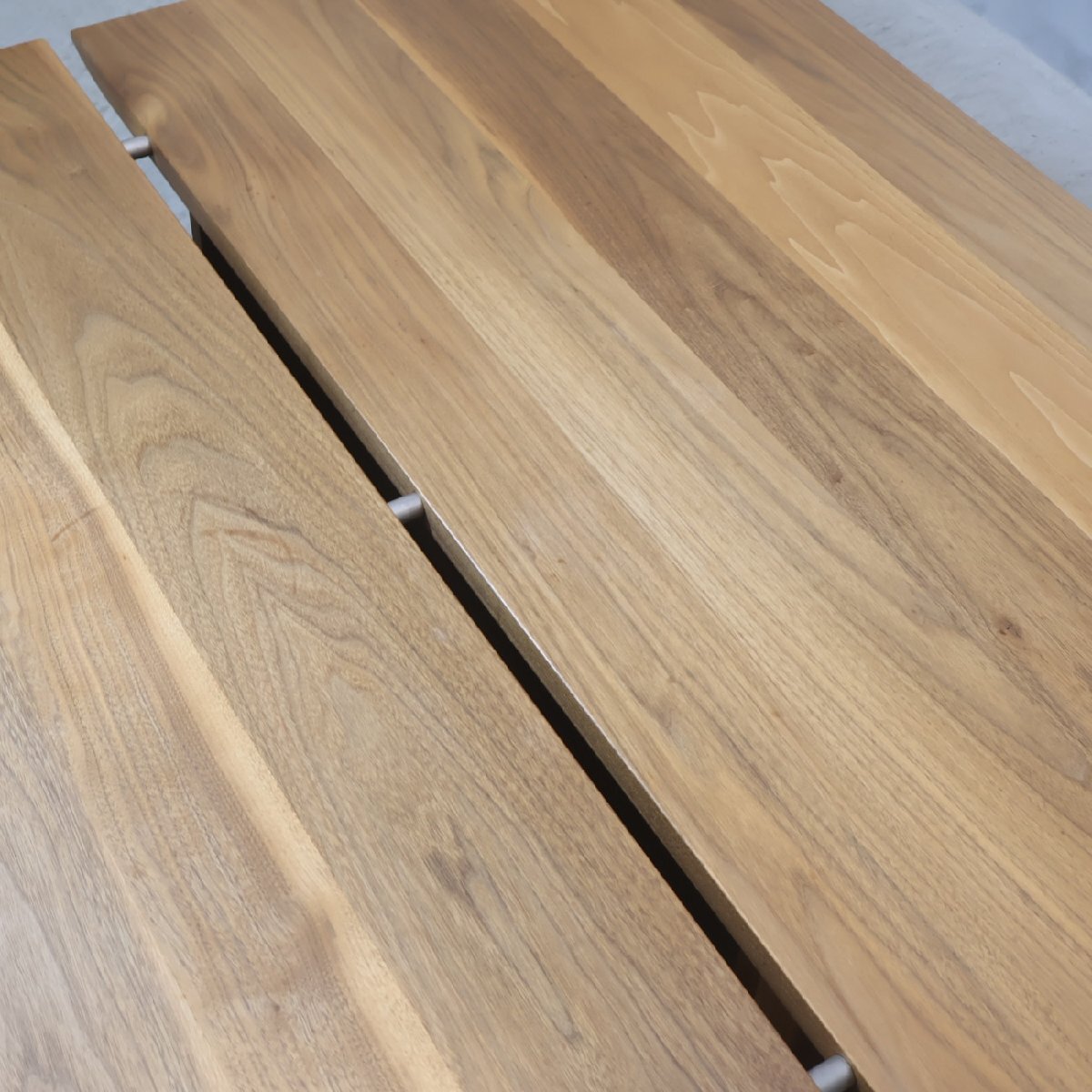 ウォールナット材の樹皮に近い白太という部分をあえて使用し、